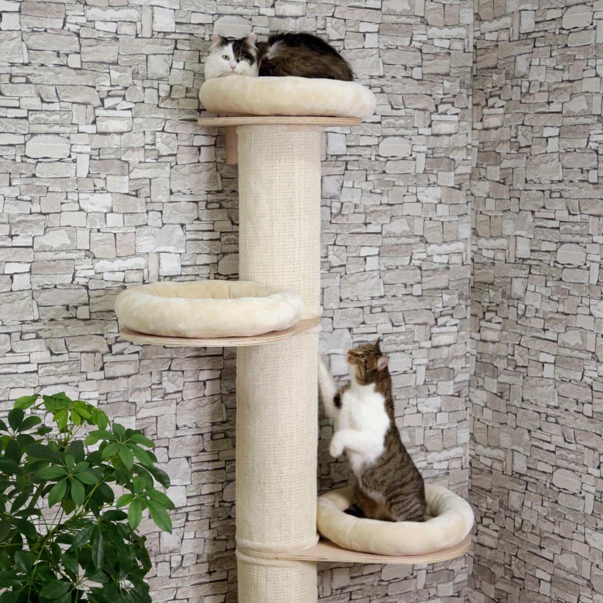 Det moderna katträdet Dolomit Tower är inte bara ett blickfång i vardagsrummet, utan också en mysig plats att leka och sova på - även för stora katter.