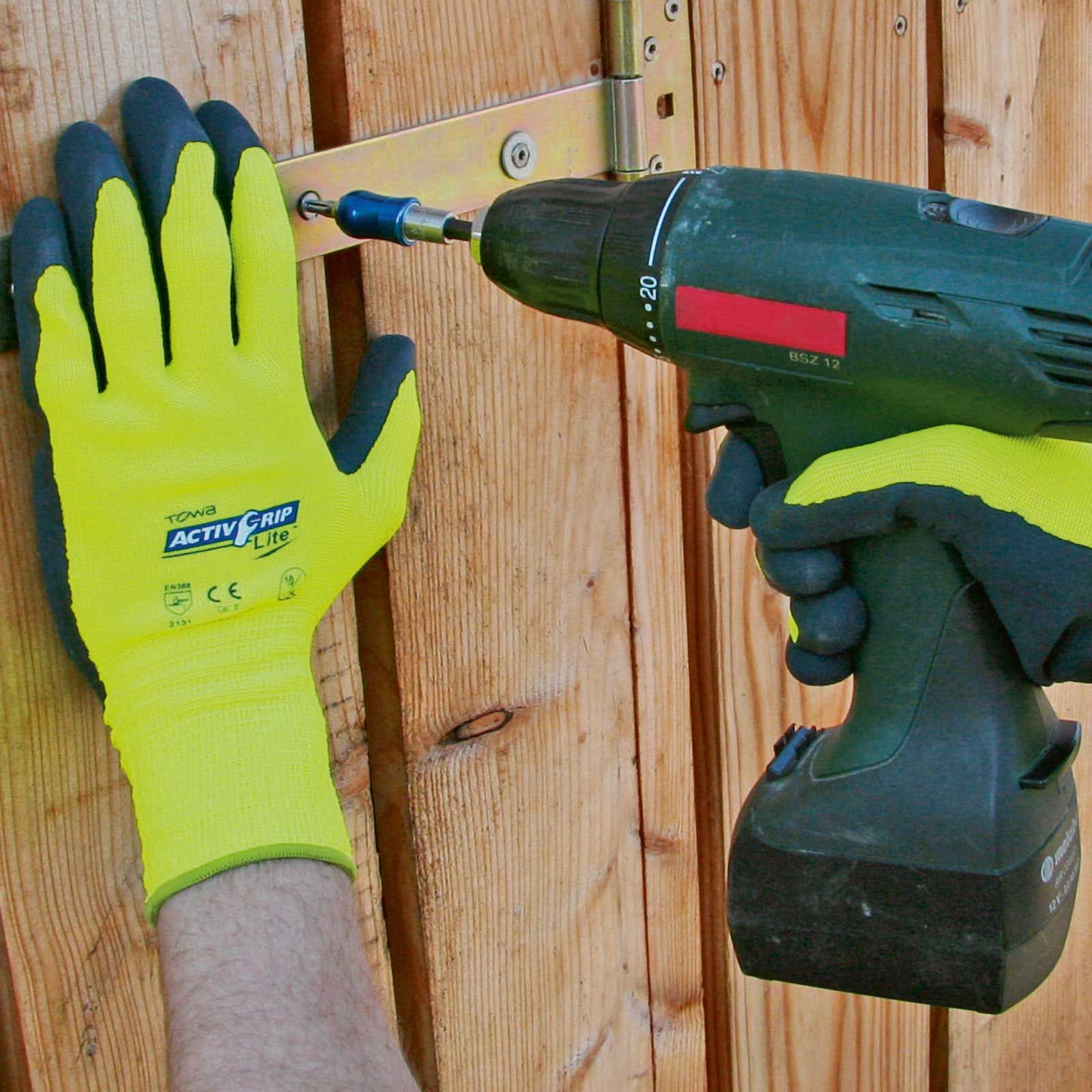 Arbetshandskarna är doppade i latex för bästa halkskydd.