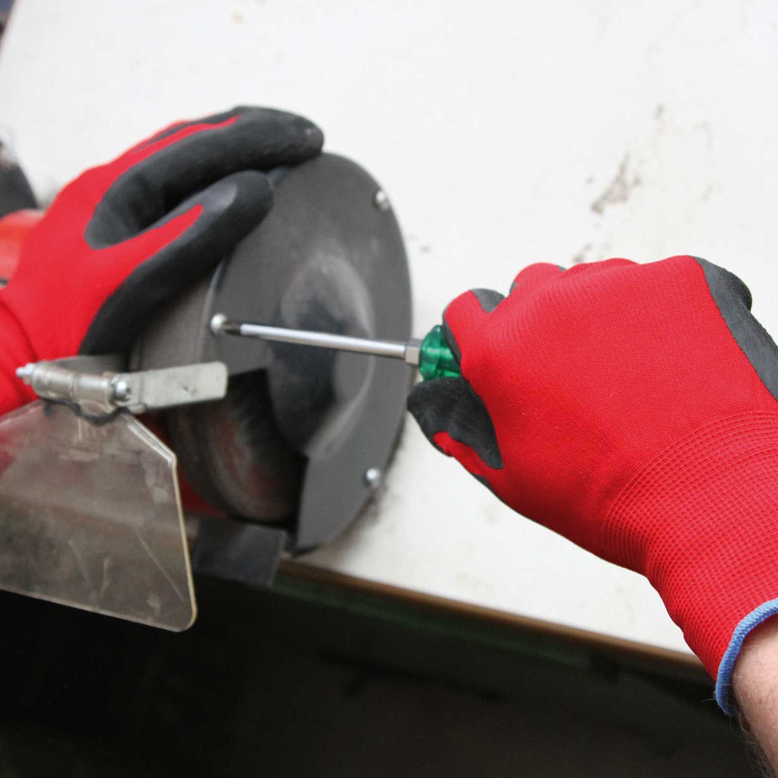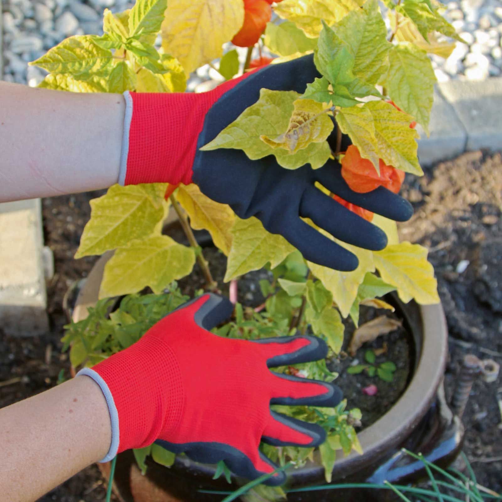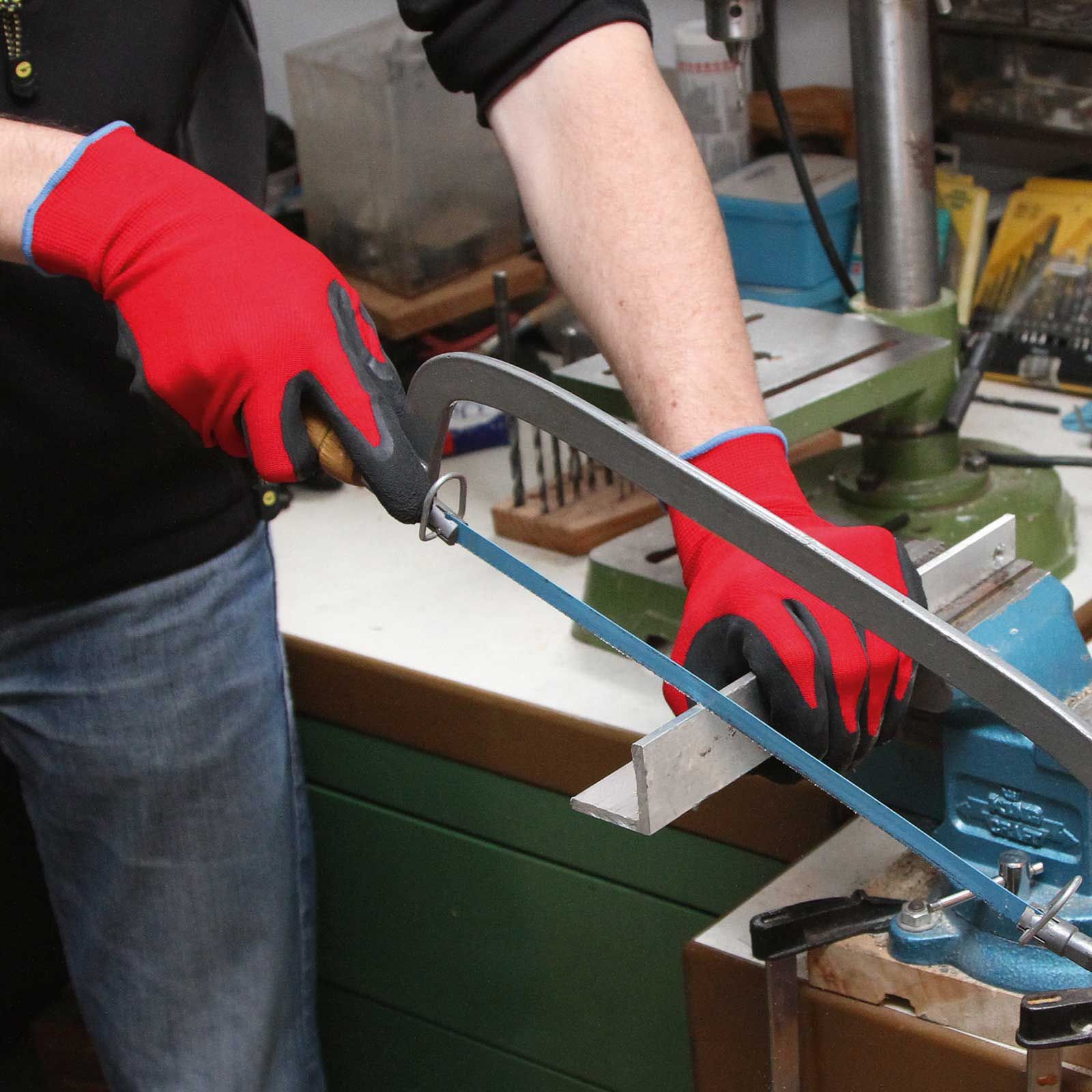 Arbetshandskarna med mjuk och greppvänlig latexbeläggning ger ett bra grepp!