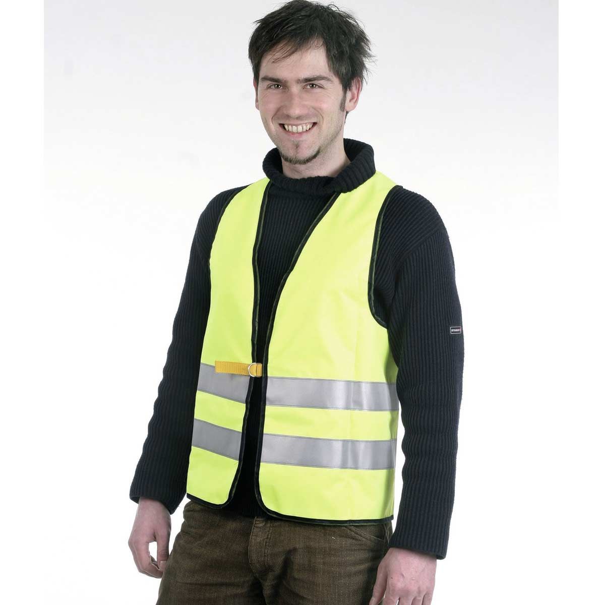 Säkerheten och synligheten i vägtrafiken ökar tack vare den iögonfallande färgen och de reflekterande remsorna.