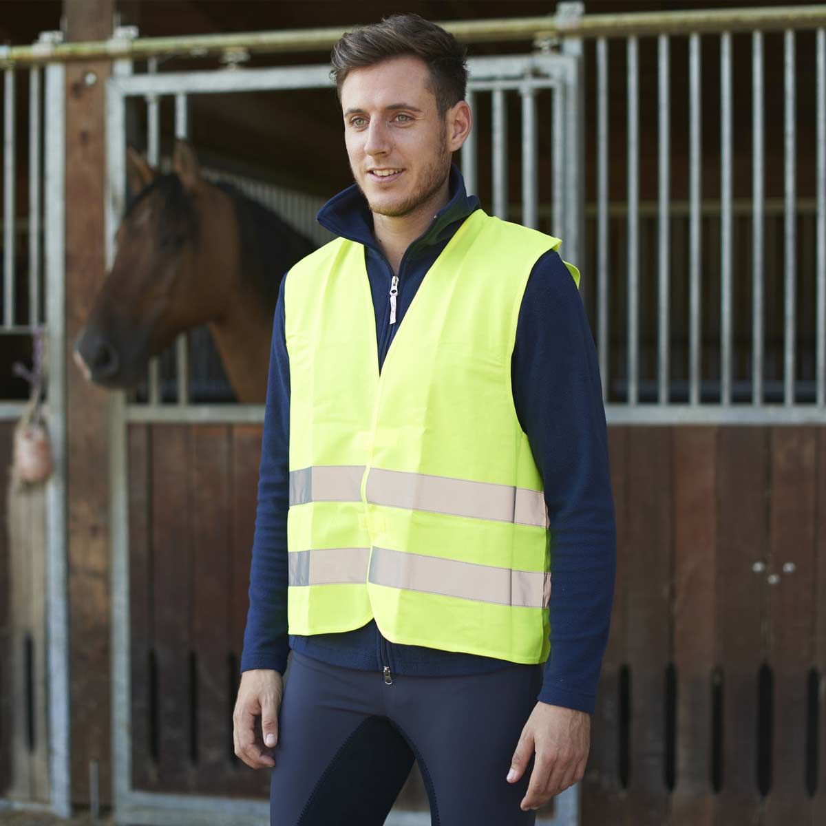 Den ljusgula västen med hög synlighet för ryttare, cyklister, vandrare, löpare, jägare & co. garanterar inte bara ökad synlighet och säkerhet i vägtrafiken på natten, utan gör också att ryttaren eller arbetaren sticker ut på dagen.