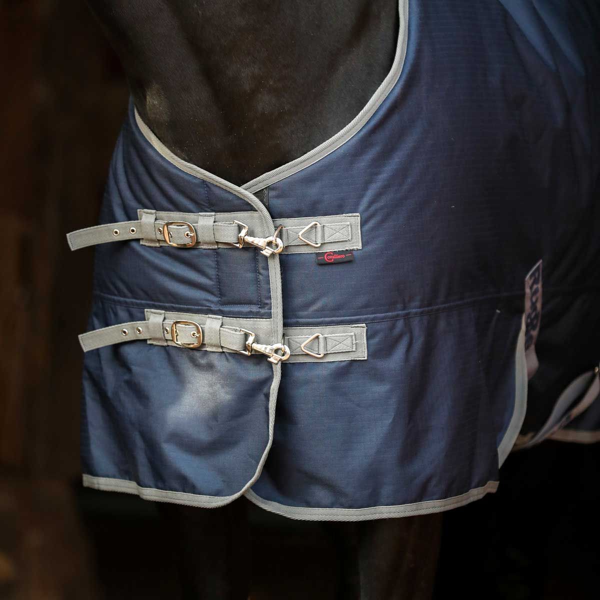 - håller hästen torr på utsidan och säkerställer samtidigt temperaturutjämning (vattentät 3 000 mm, andningsbar 3 000 g/m²/24 h).