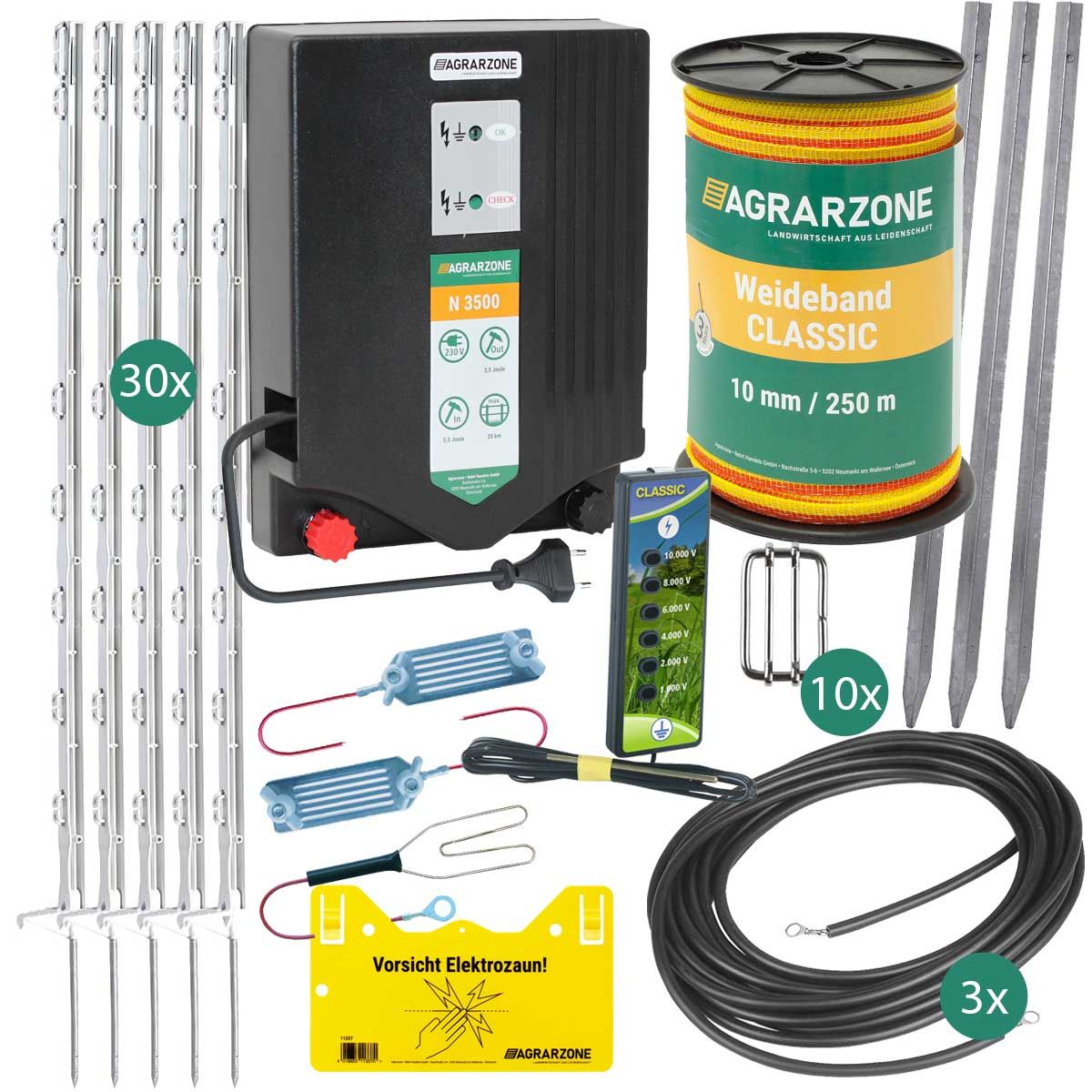 - 1x Agrarzone N 3500, 230 V elstängselaggregat.