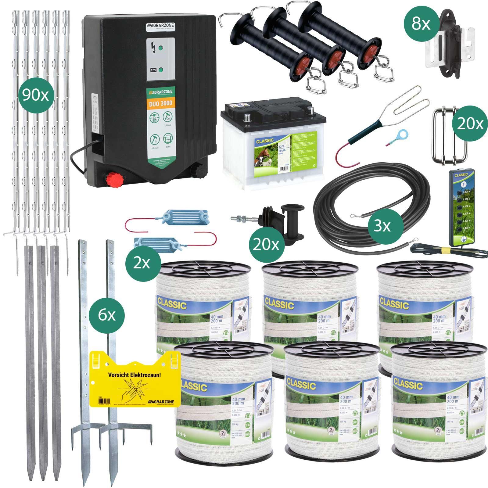 Startset för häststängsel DUO3000 AKKU 12V/230V, 4,5J, band 1200m, 1 grind