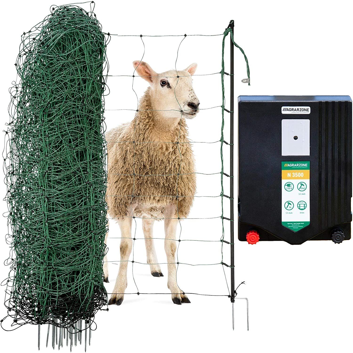 Agrarzone Startpaket för fårstängsel med elstängsel - elstängsel med hög effekt och 50 m elektrifierat fårnät.