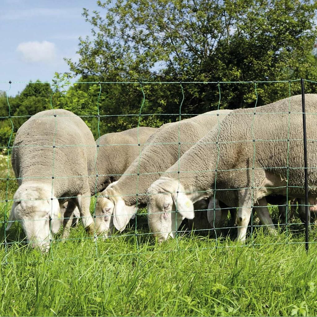 Det 500 m långa fårnätet som ingår i leveransen är 90 cm högt och hålls av 140 plastpinnar med dubbel spets. Den dubbla spetsen ger större stabilitet i jordiga och sandiga jordar jämfört med en enkel spets. Av de tio plaststrängarna är de nio översta levande. Den nedersta strängen är icke strömförande för att inte avbryta strömflödet genom gräset. Fårnätet har särskilt smala maskor som gör det ännu svårare för dina djur att fly och avskräcker angripare som vargar från att bryta sig in. För att fästa stängselsträngarna ingår också 120 stängselpinnar i den omfattande uppsättningen. Tack vare nätet och ytterligare elektrifiering med 2-radiga stängselsträngar för betesmarker har du ett effektivt strömflöde även vid högre vegetation.