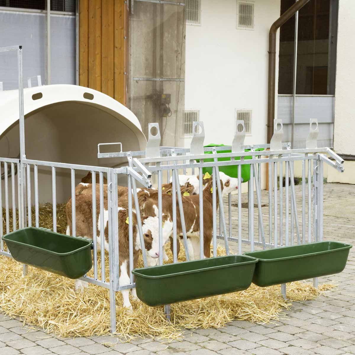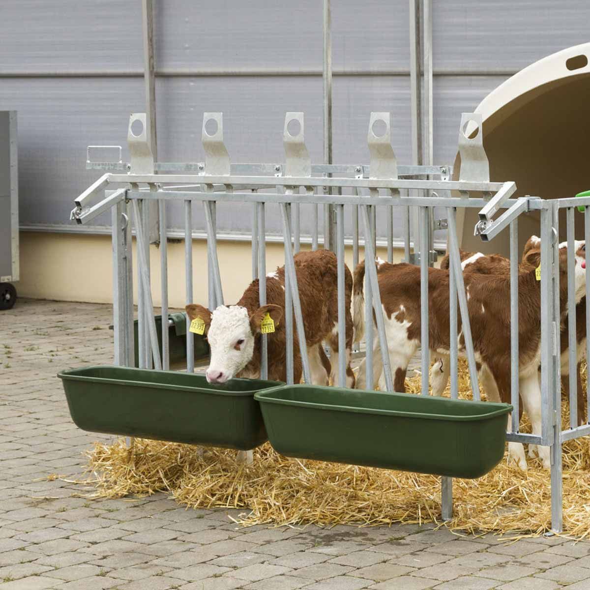 Den Kerbl långa fodertråget är tillverkat av särskilt stabil glasfiberförstärkt plast. Träsket är mångsidigt, passar på nästan alla armaturer med upp till 5 cm tjocklek och är idealiskt till exempel för nötkreatur eller som tillbehör till en kalvhage.