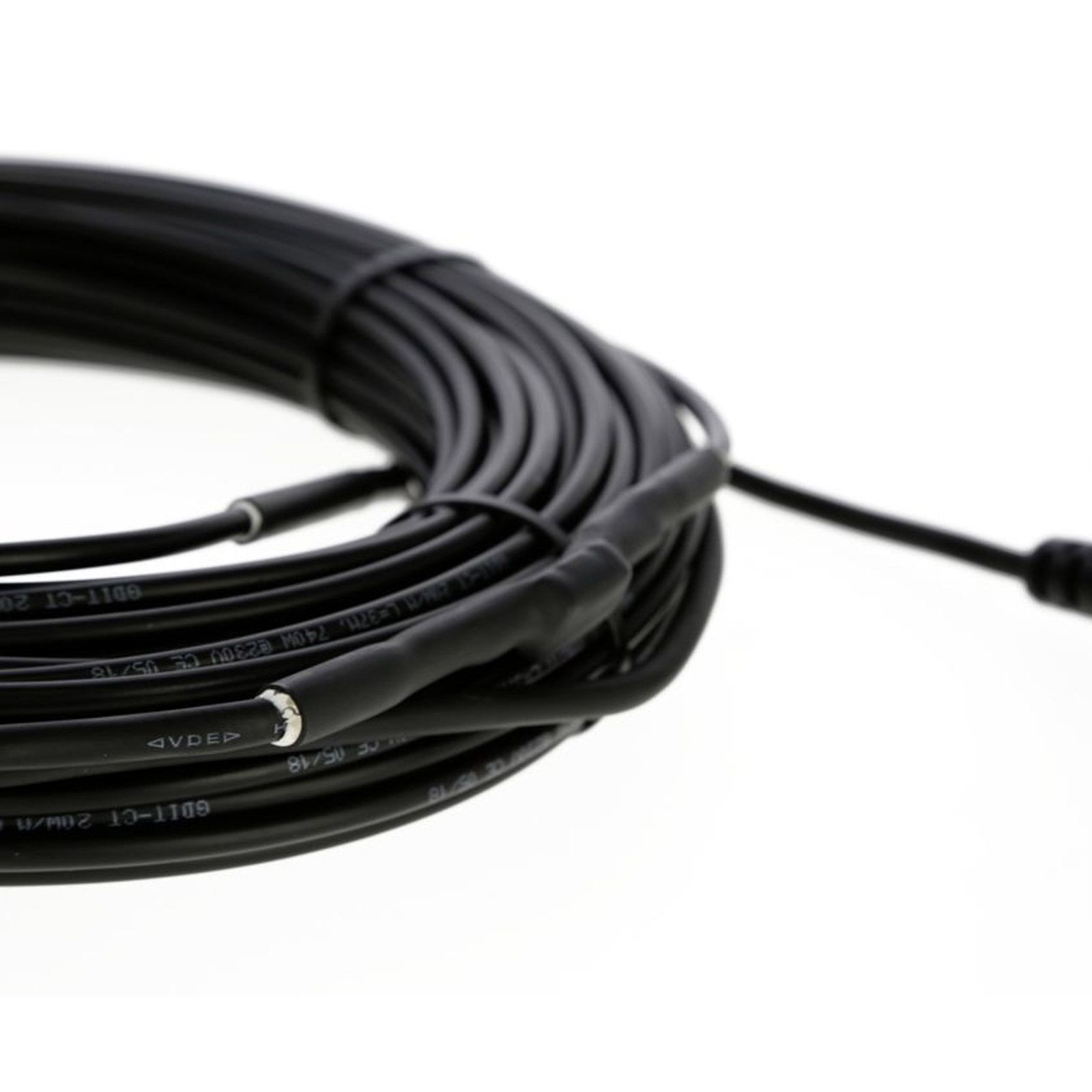 Den instickbara värmekabeln för rännor och rörledningar uppfyller kraven för hållfasthetsklass M2 enligt IEC60800:2009 för att hålla rännor och rörledningar säkert frostfria. Tack vare den höga värmekapaciteten på 20 watt per meter håller värmekabeln rännor, stuprör och rörledningar frostfria även vid mycket låga temperaturer. Den integrerade temperaturomkopplaren slår på ett tillförlitligt sätt på värmekabeln vid en temperatur på +3 °C och stänger av den igen vid +12 °C.