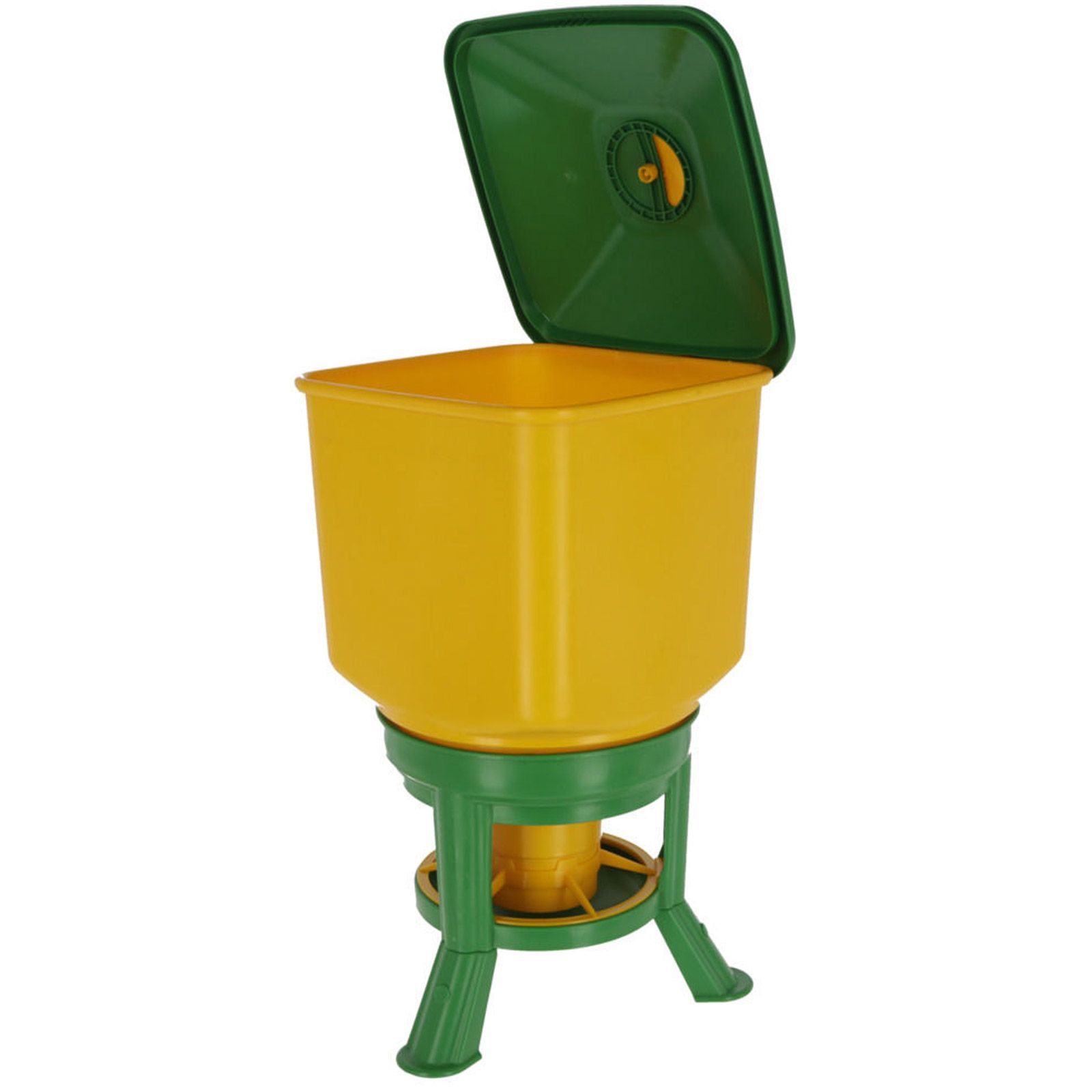 Den automatiska foderautomaten med fötter garanterar enkel fodertilldelning och tillförlitlig foderförsörjning för fjäderfä.