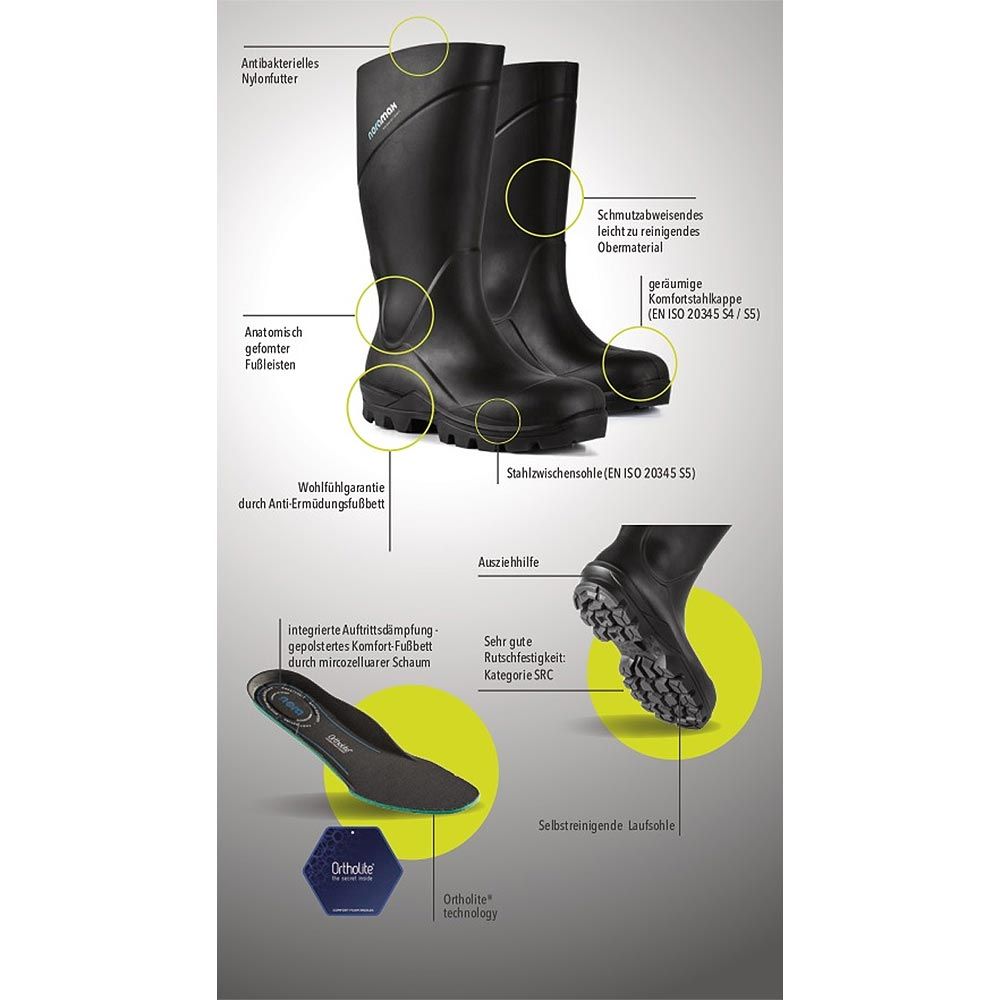 Den robusta Noramax boot Safety S5 är utformad för komfort och säkerhet. Den här gummistöveln är till för dig som vet hur du ska ta dig an en sak. Den har en attraktiv design och är bekväm att bära.