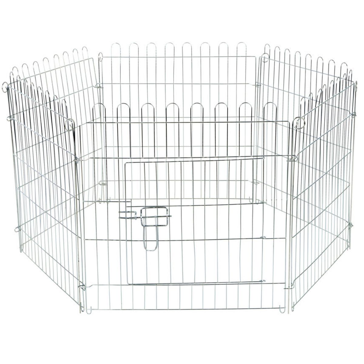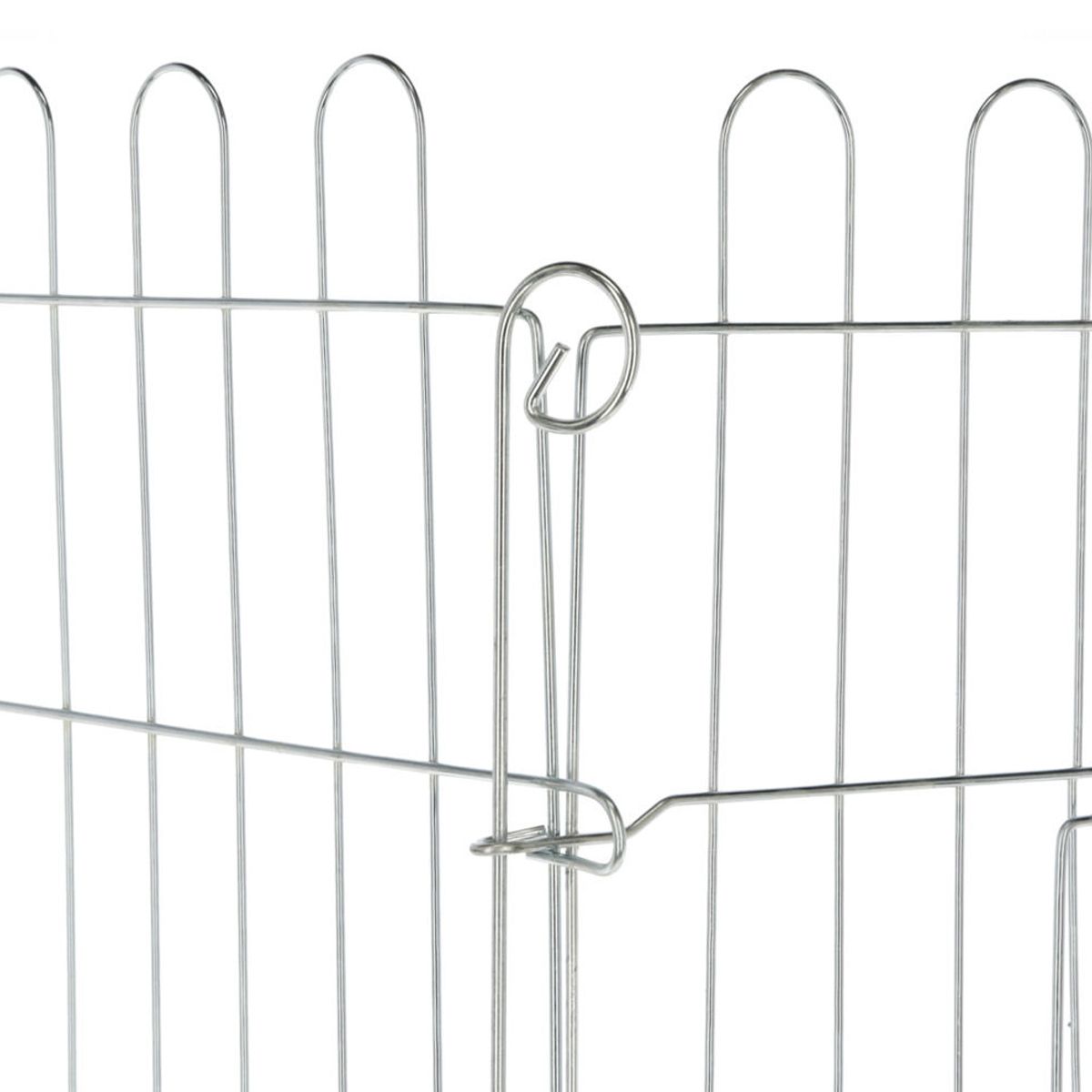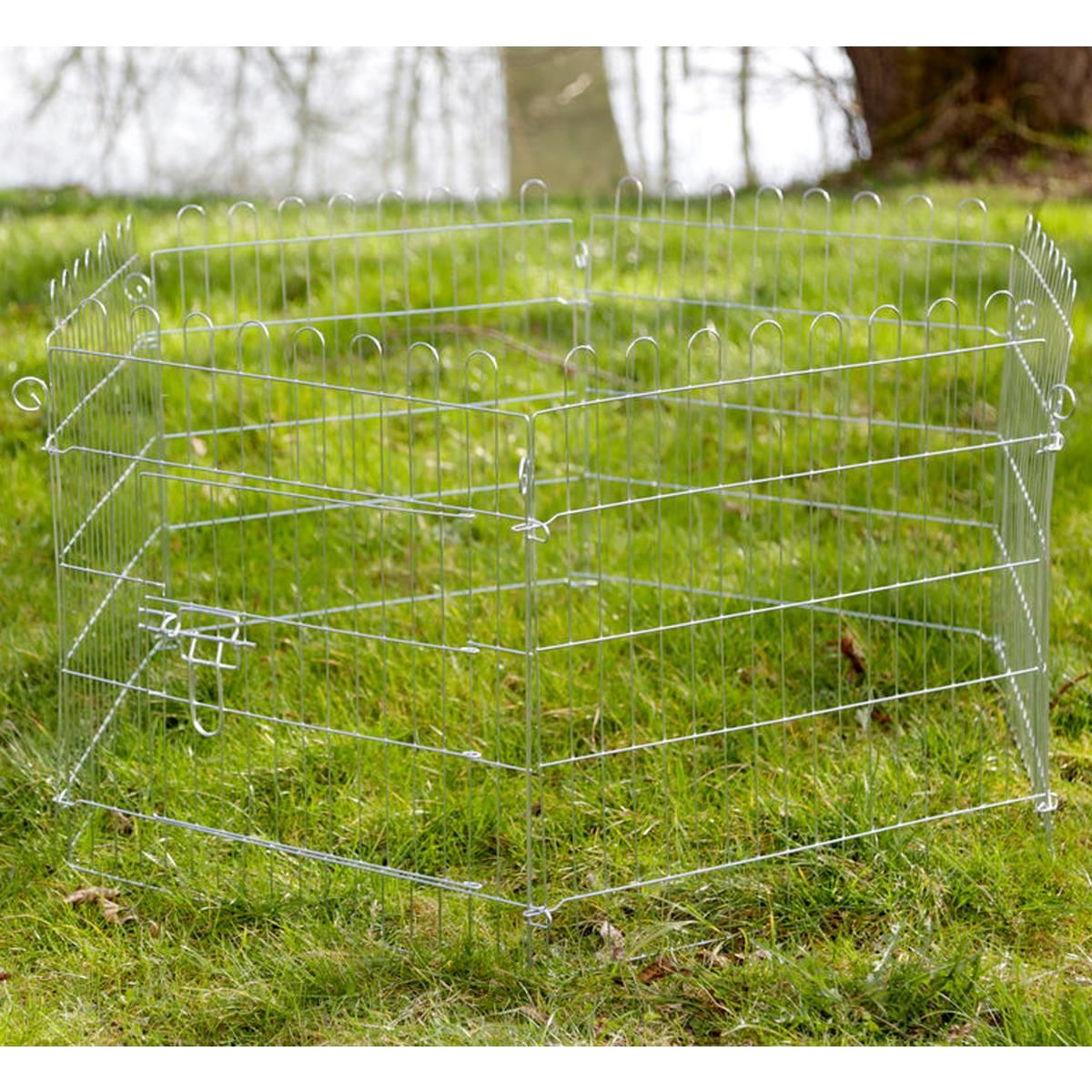 Den sexkantiga utomhusinhägnaden erbjuder dina små djur bekymmersfri sommarfriskhet i trädgården. Nätet/solskyddet skyddar dina små från objudna gäster som katter, mård eller rovfåglar. Det ger också tillräckligt med skugga under varma dagar. De 6 stängselelementen kan sättas upp enkelt och variabelt och kan lagras för att spara utrymme på vintern.