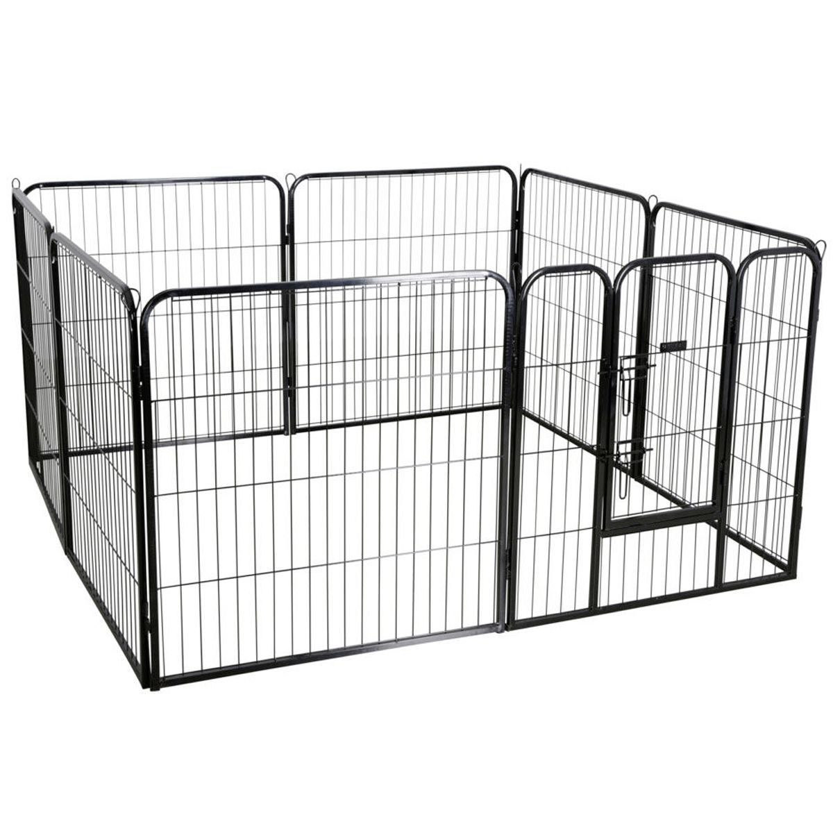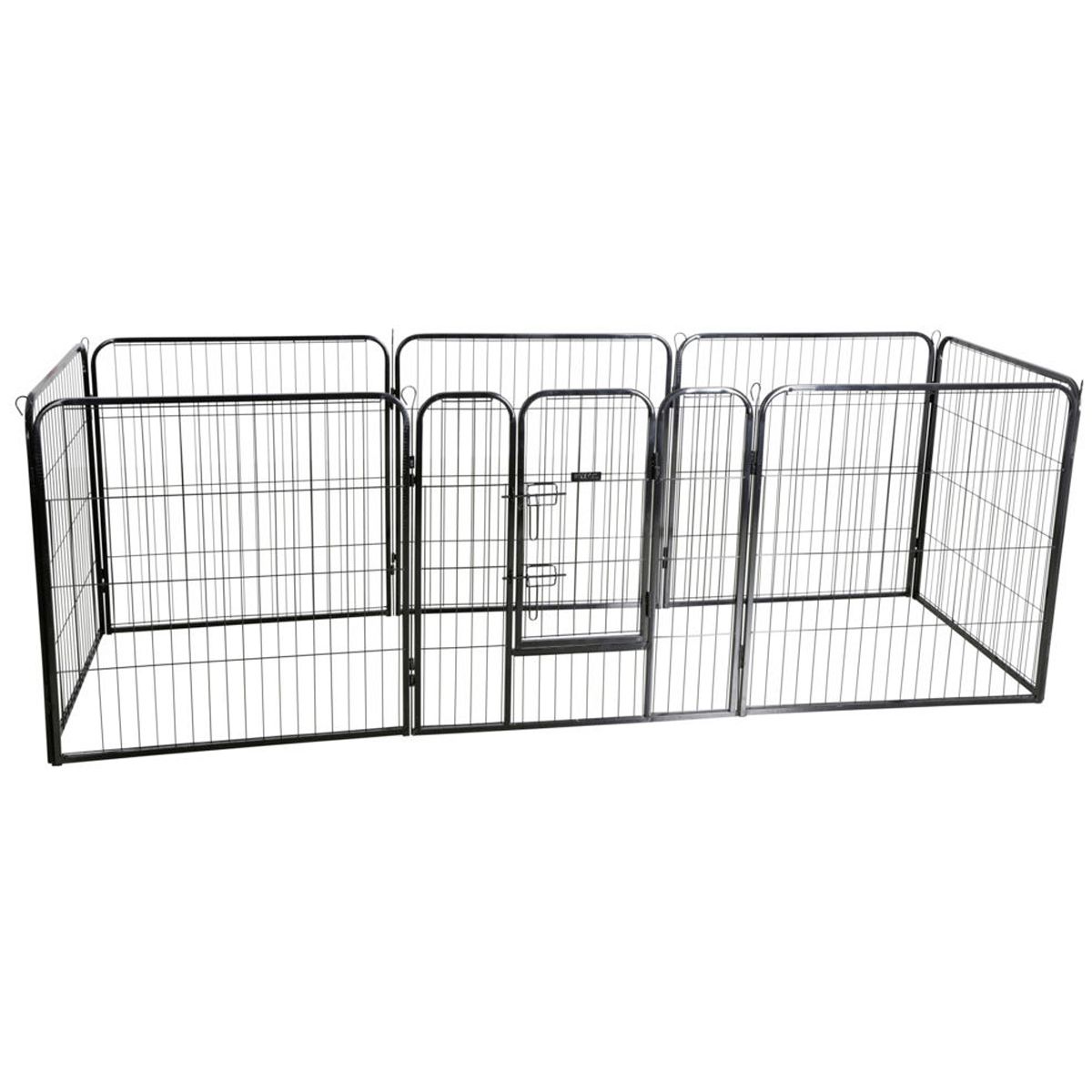 För att även mindre hundar ska kunna röra sig utan ständig övervakning finns det här högkvalitativa och robusta hundraststängslet. Hundens och valpens friggebod har flera element som praktiskt taget kan anslutas till varandra med hjälp av stänger och som därmed kan arrangeras som önskat .