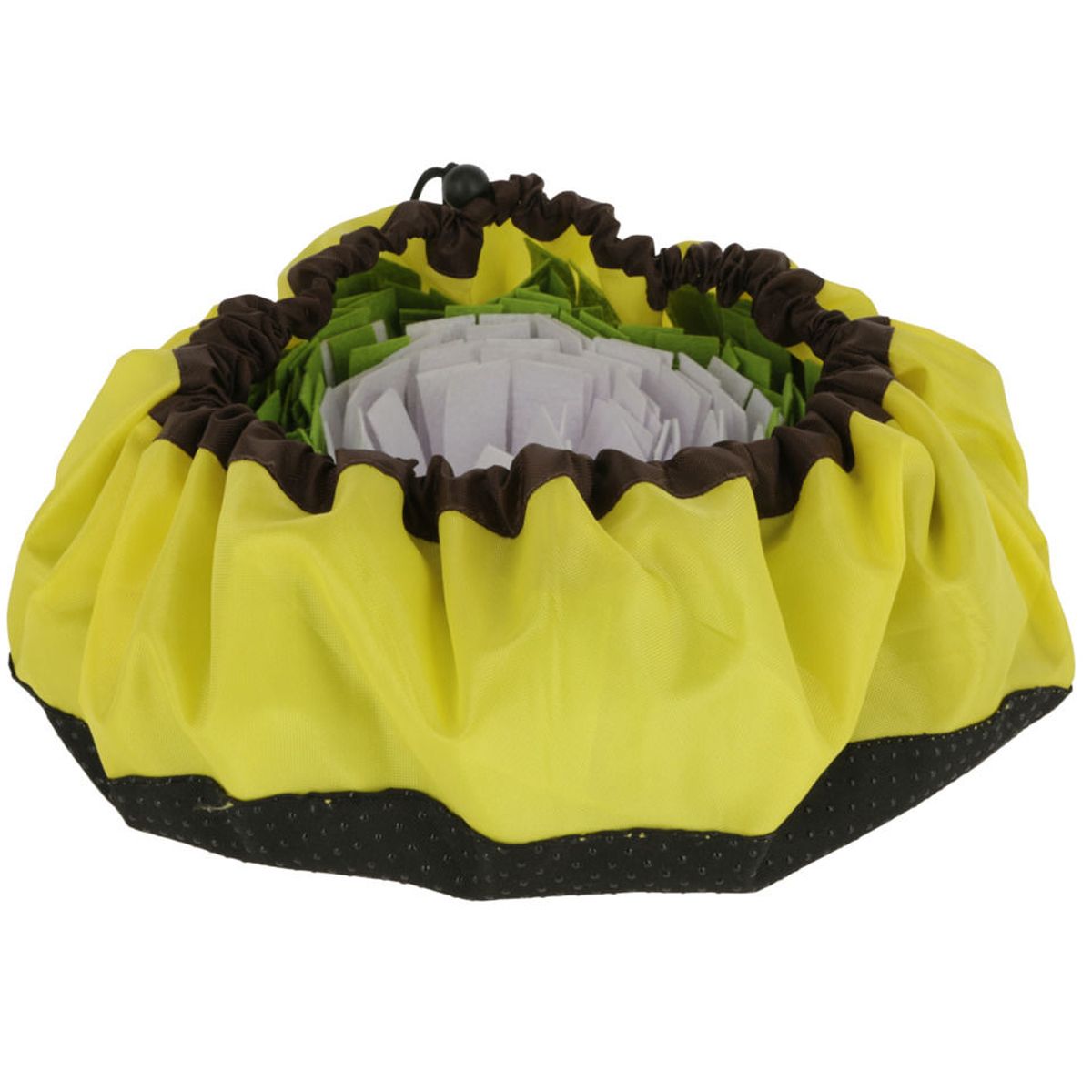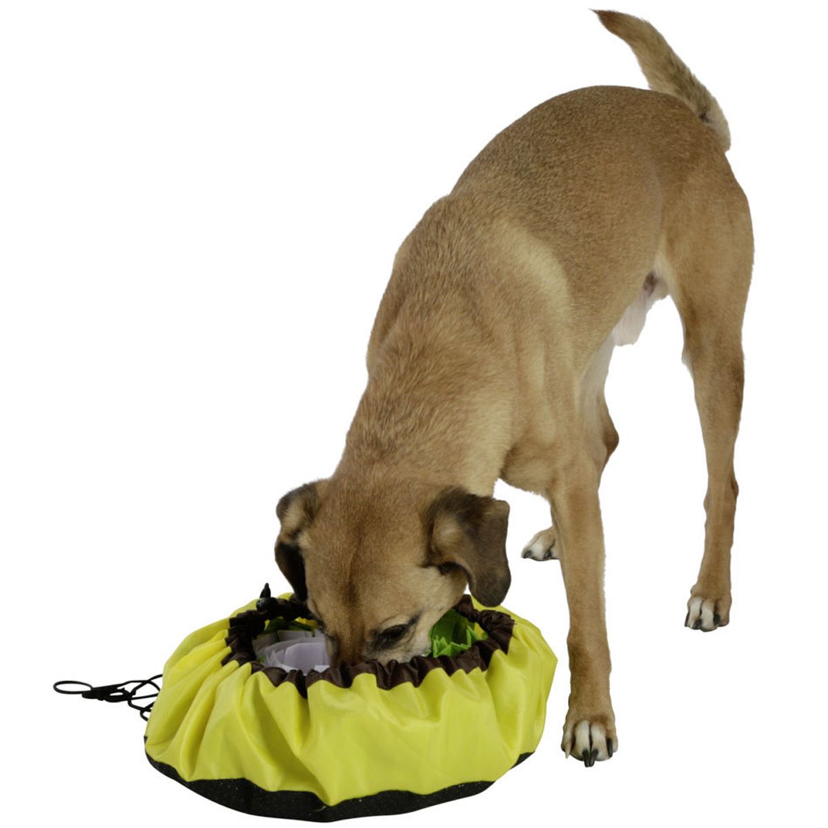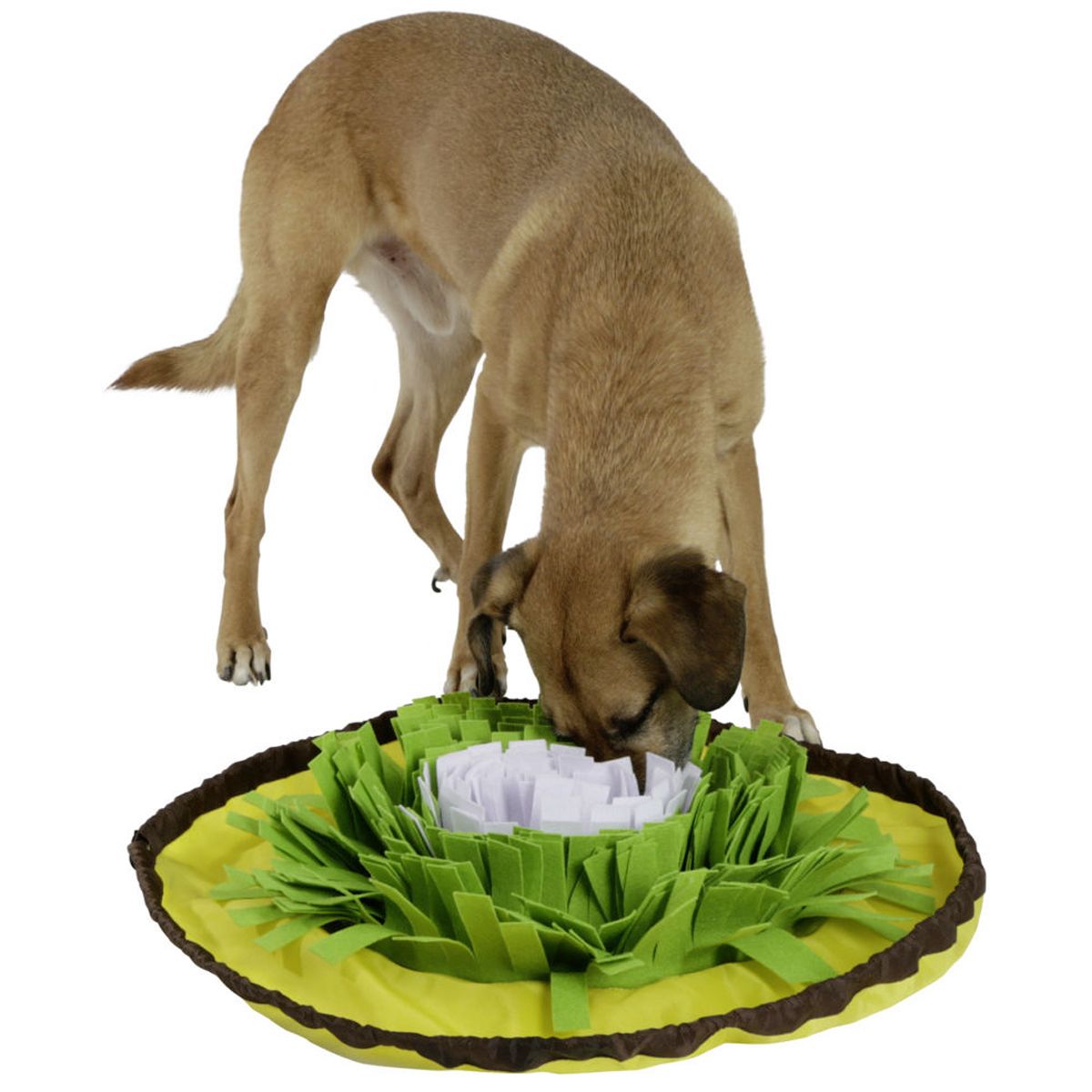 Hund- och kattsnuffmattan erbjuder många olika alternativ för att gömma torrfoder, godsaker eller leksaker och hålla din hund sysselsatt i timmar. Snuffmattan hjälper också djuret att koncentrera sig och att minska stressen och undviker att äta förhastat. Med bara några få steg kan sniffningsmattan förvandlas till en sniffningsskål med hjälp av ett snöre.
