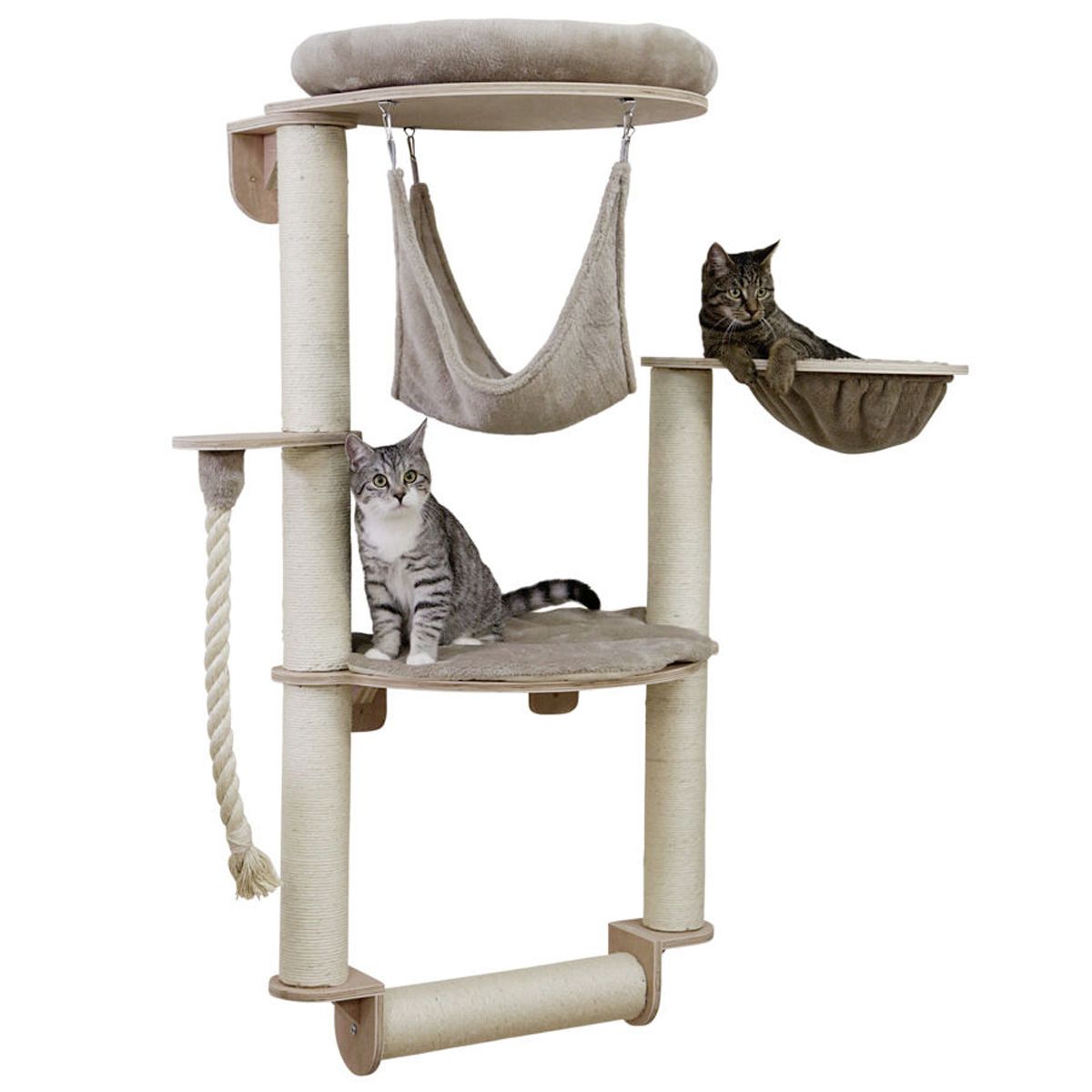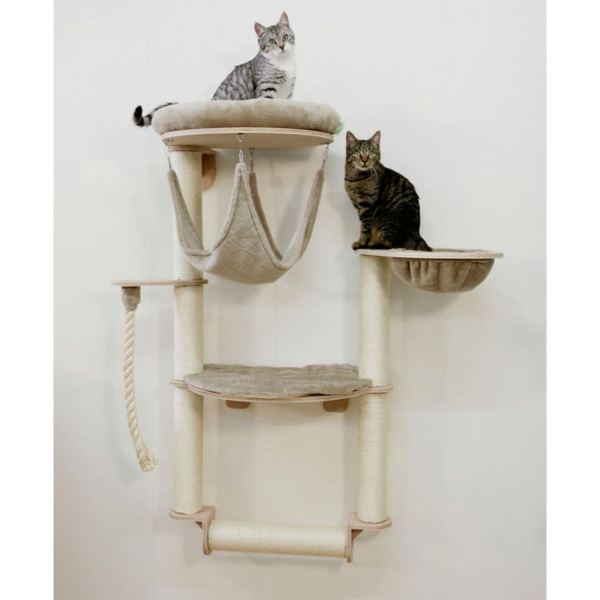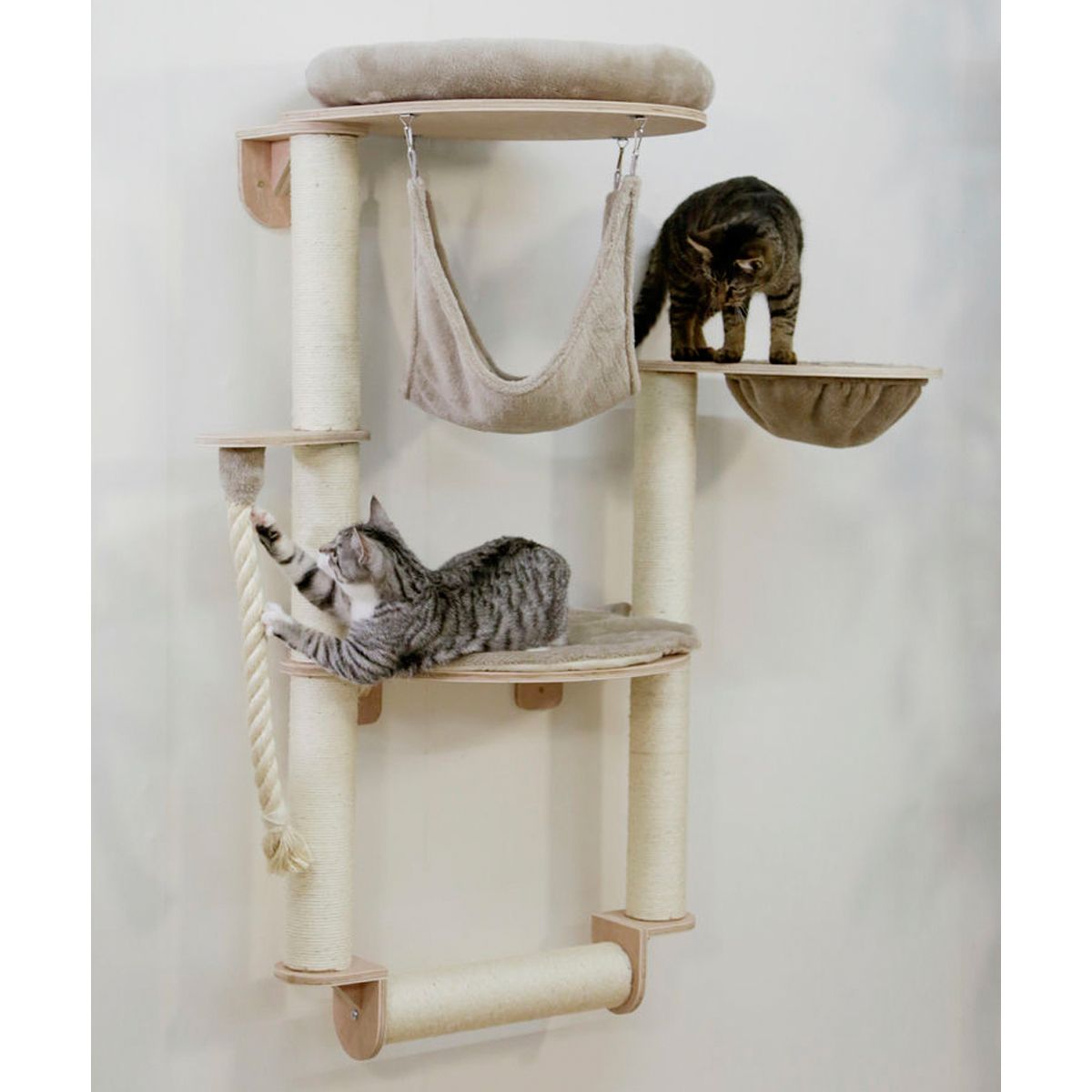 Modern väggskrapstolpe för katter inklusive hängmatta, solstol, sisalstolpar, lekrep & Plattform med mysig säng - för att leka, springa runt och koppla av.