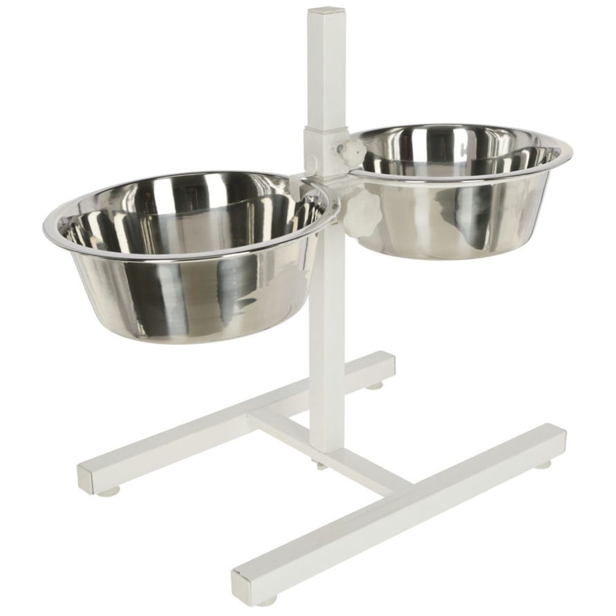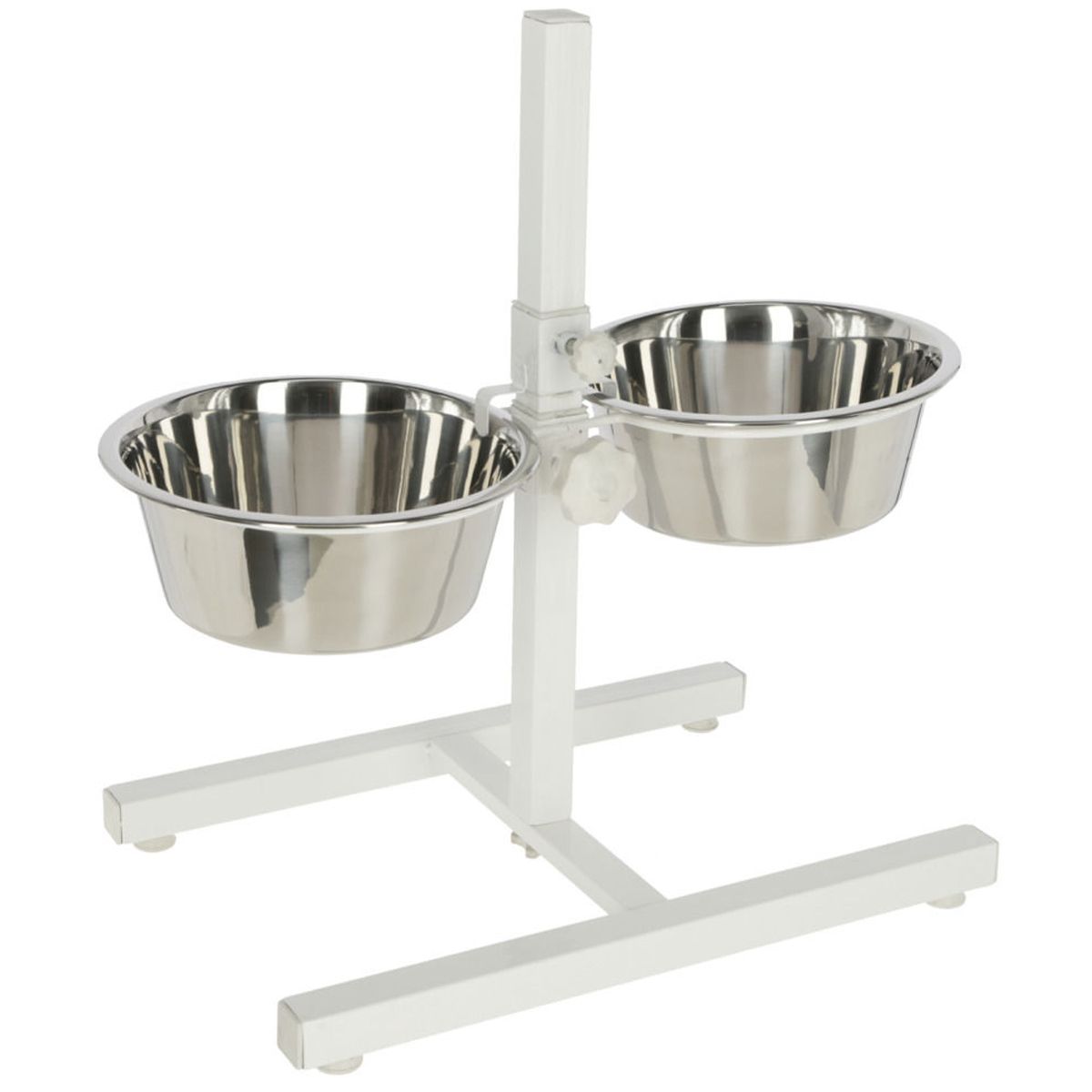 Foderbar av rostfritt stål med 2 skålar i rostfritt stål för hundar som gillar att äta och dricka upphöjda.