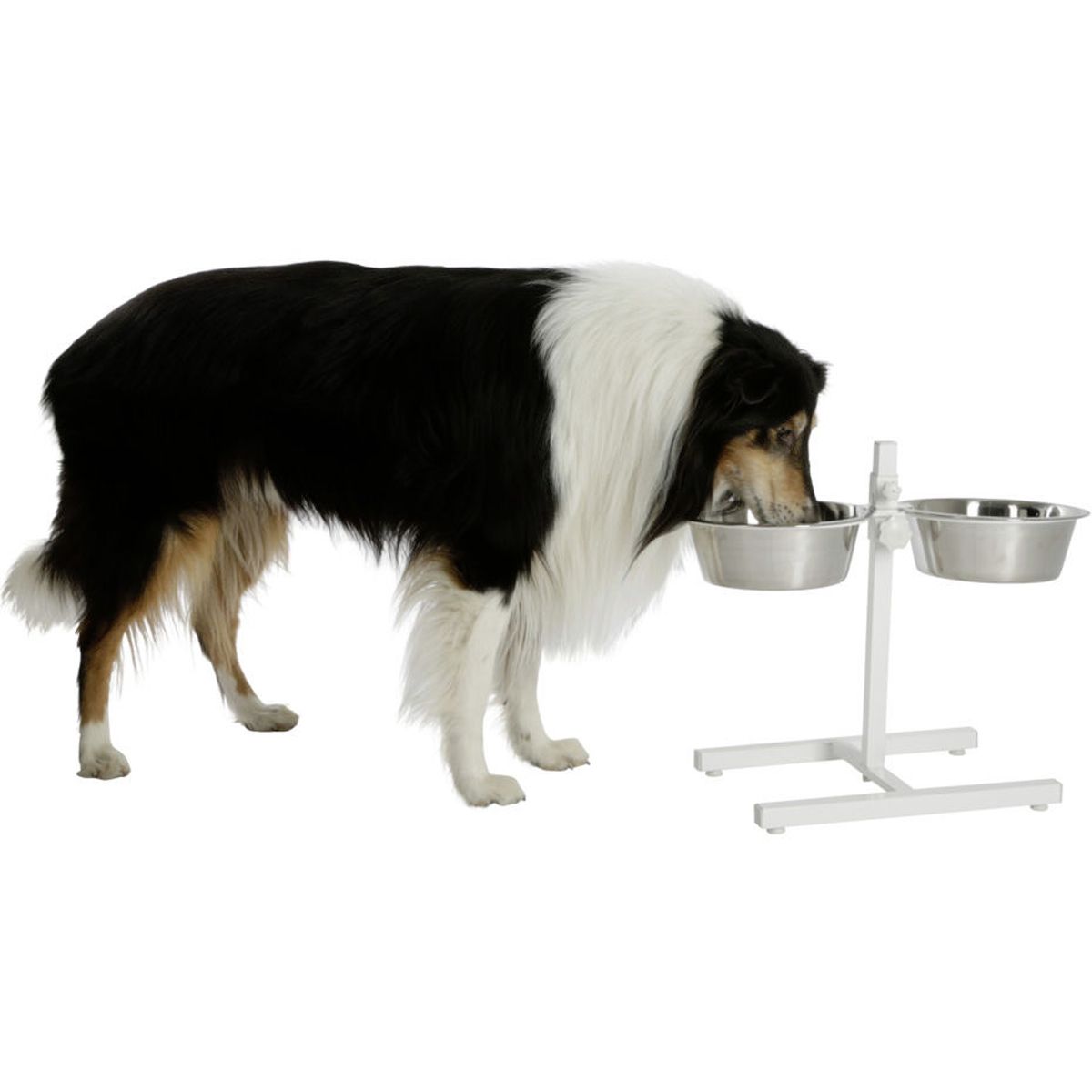 Med gummiläppar på skålhängarna och på fötterna är ramen stabil och säker. Det är knappast möjligt att innehållet glider eller spills. De avtagbara skålarna kan rengöras snabbt och enkelt. Den höjdjusterbara matstången anpassar sig perfekt till din hunds storlek.