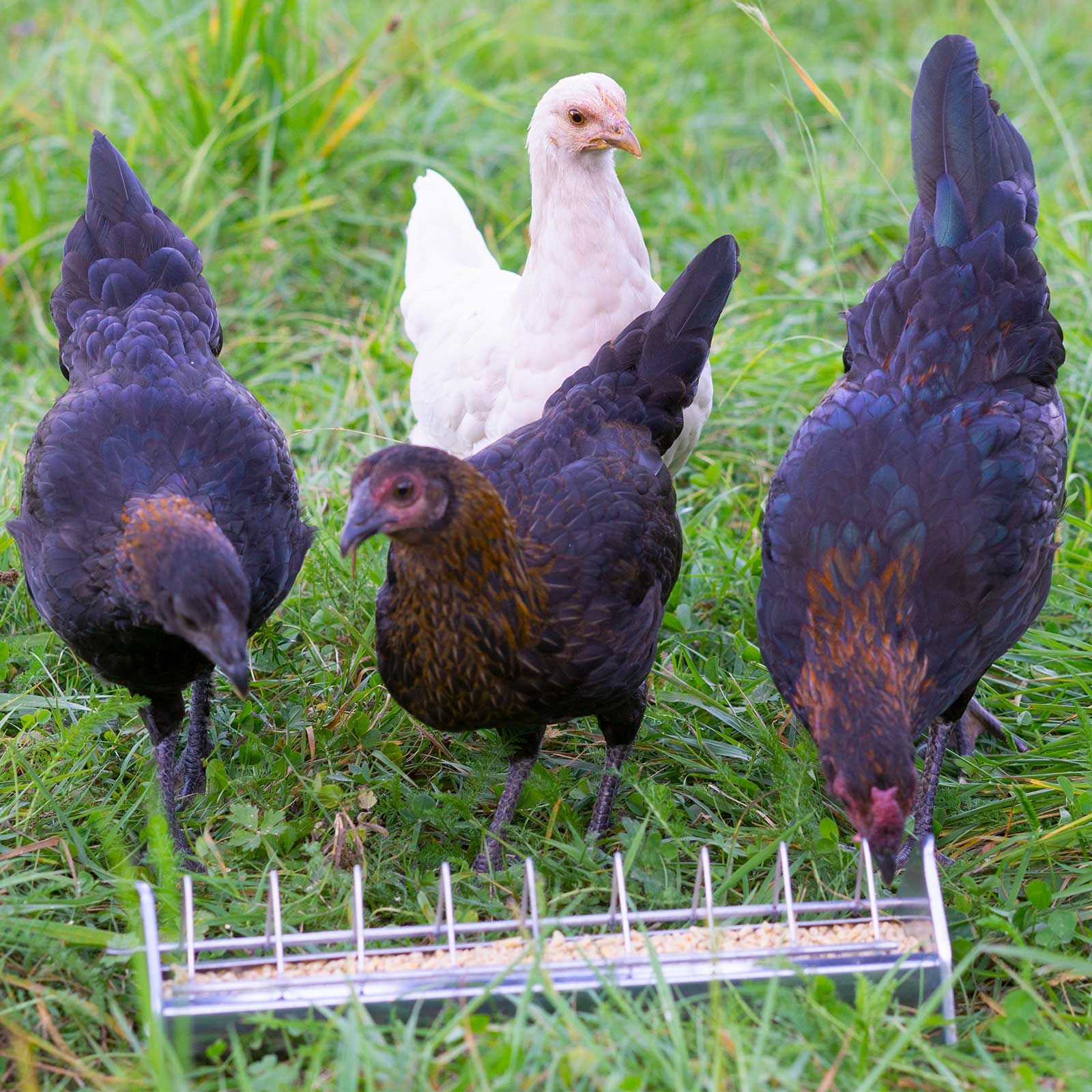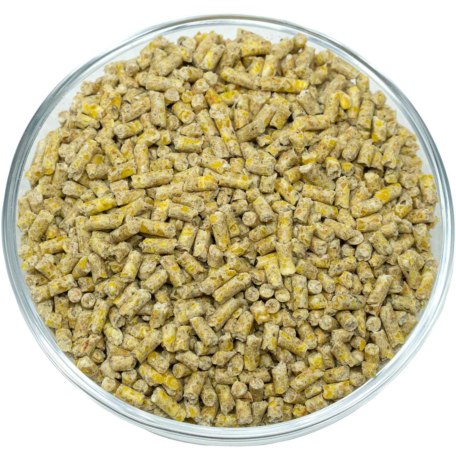 Fördelen med pellets jämfört med granulerat och mjöligt kycklingfoder är att det är omöjligt att separera det under lagringen, vilket förhindrar selektiv utfodring och eventuell kontaminering. Genom pelletsen tar djuren automatiskt upp en komplett balanserad blandning av näringsämnen och ingredienser. Djurens näring är därför balanserad. Även de lägre stående djuren får på detta sätt fortfarande "goda korn". Om du vill byta från mjölfoder till pelletfoder (eller tvärtom) krävs det en viss tid för att vänja sig vid detta. Denna blandning är garanterat GMO-fri. Certifiering enligt pastus+ AMA kvalitetsstämpel.