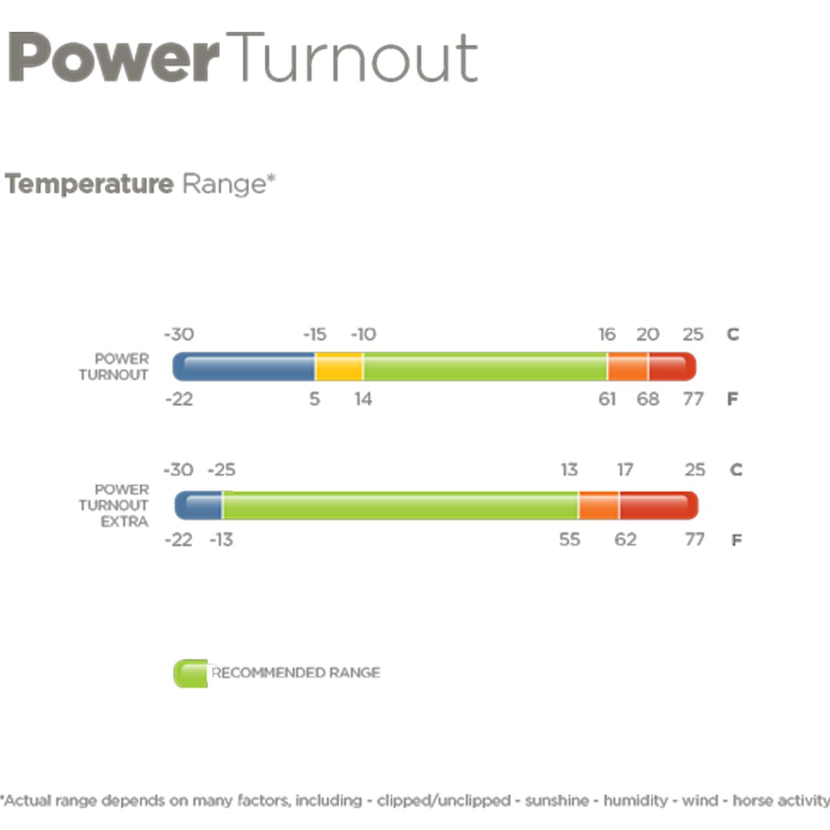 Power Turnout garanterar perfekt komfort och optimalt skydd i extremt stora temperaturområden. Det yttre materialet i Bucas Power Turnout-serien består av ett högkvalitativt, rivbeständigt, vattentätt och andningsbart Ballistic Nylon-material. Dessutom är filten utrustad med en värmereflekterande inre beläggning av aluminium. Skulderkanter och Click'n Go-systemet med "Magnet Snaplock" säkerställer en perfekt passform. Dessutom har hästfilten Power Turnout det Bucas-typiska "Stay-dry"-fodret med antibakteriell utrustning. Detta innebär att filten kan läggas på den våta hästen precis som en svettmatta. Hästen torkar snabbt under filten, fodret, som ligger direkt på hästen, förblir torrt och filten behöver inte längre bytas. Kombinationen av dessa olika funktioner innebär att Bucas Power Turnout erbjuder betydligt mer skydd och komfort än andra filtar i samma viktklass. Power Turnout Big Neck är en utmärkt filt för hingstar och raser som har ett brett axelomfång, till exempel friser, andalusier och draghästar. Finns i klassisk skärning, med ett halsstycke som kan köpas separat, i stor hals och hög hals.