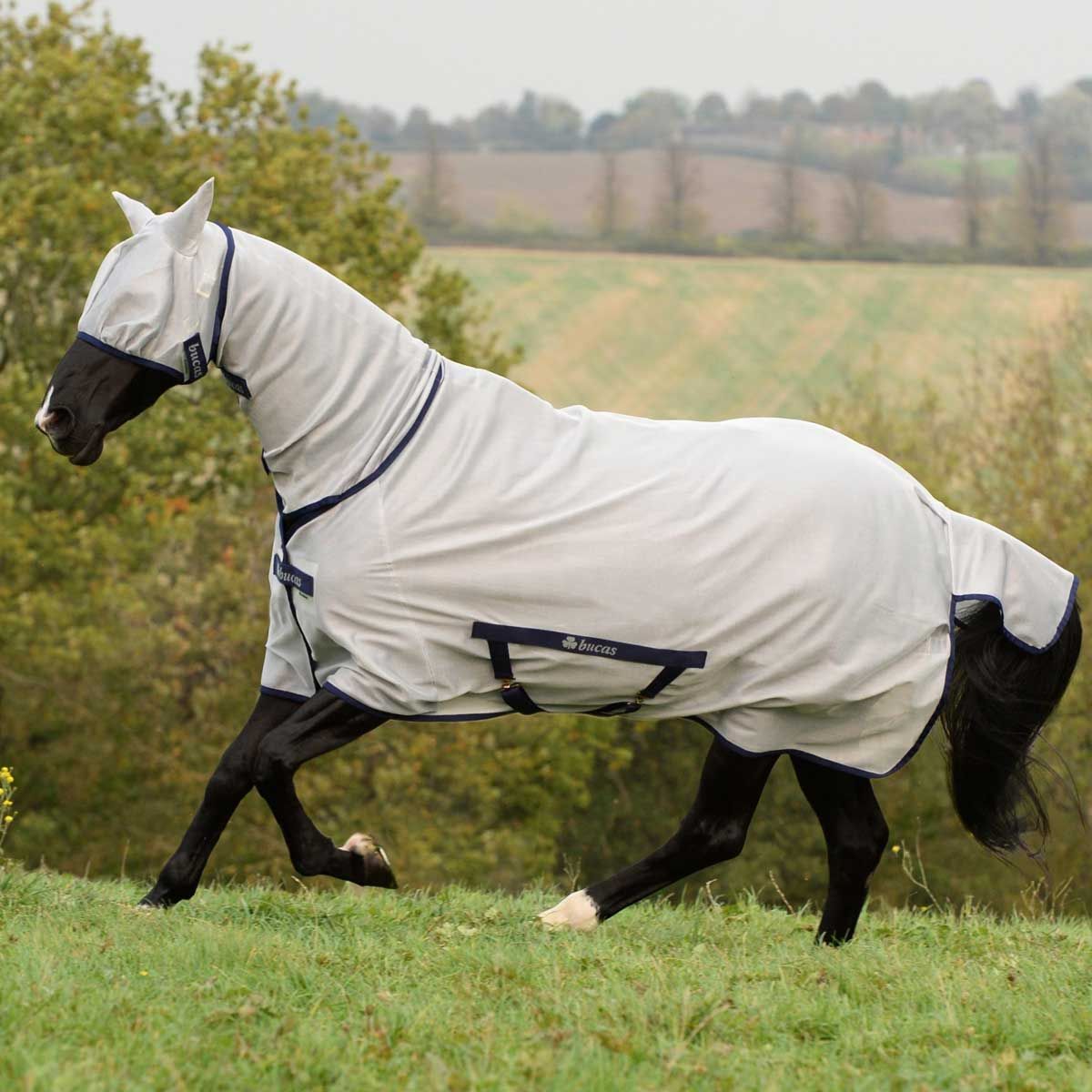 Freedom flugmatta är tillverkad av ett finmaskigt material och har en fast nackdel för att skydda hästen optimalt från flugor och andra insekter. Det fina nätmaterialet säkerställer dessutom tillräcklig luftcirkulation och håller hästens kropp behagligt sval. En överlappande frontstängning, fästpunkter för benremmar och ett svansskydd säkerställer också en optimal passform på filten. Freedom fly filtar är utrustade med samma egenskaper som Freedom utomhusfiltar eller Twills, t.ex. det skurna, överlappande bröstspännet. Dessutom har Freedom-folien ett mjukt Silk-feel-foder i manen, vilket förhindrar skavningar.