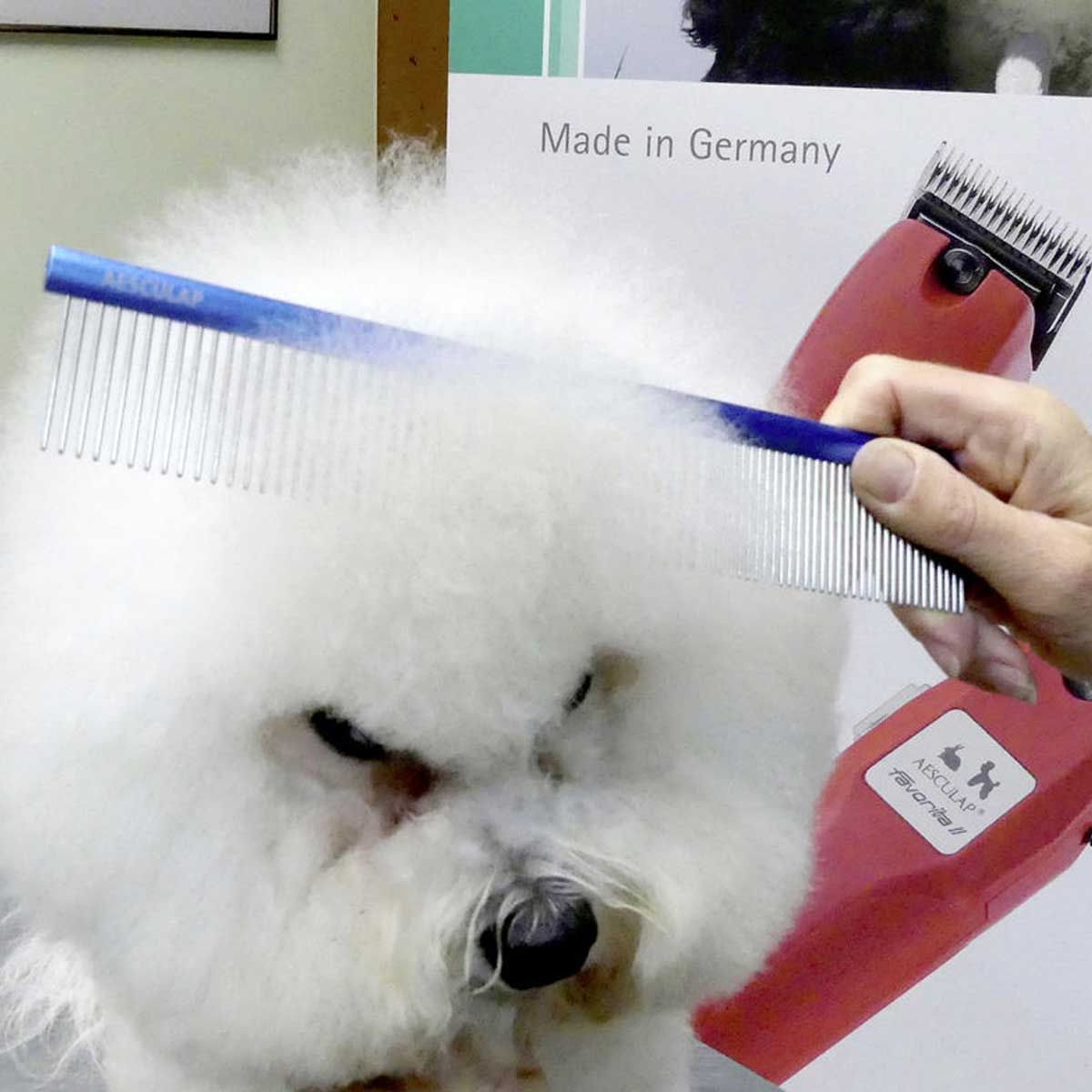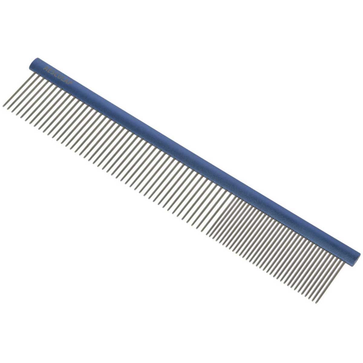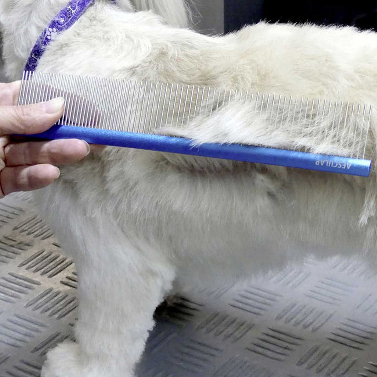 Pälskammen är perfekt för att borsta ut och lösa upp lätta trassel och knutar i pälsen, samt för att förbereda för och efter klippning. Den här Aesculap kamen i rostfritt stål är lämplig för hundar och katter av alla storlekar och pälslängder. Kromplätering och rundade tänder gör kammen särskilt skonsam mot pälsen.