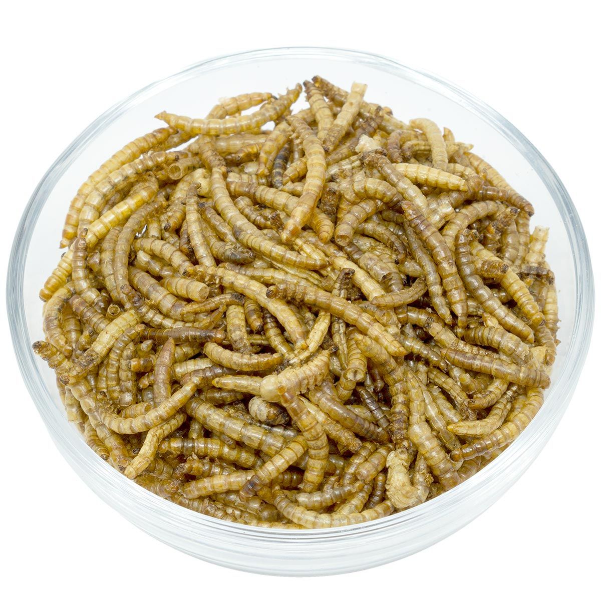 Torkade mjölmaskar är ett högkvalitativt foder för fiskar, fåglar, reptiler och gnagare.