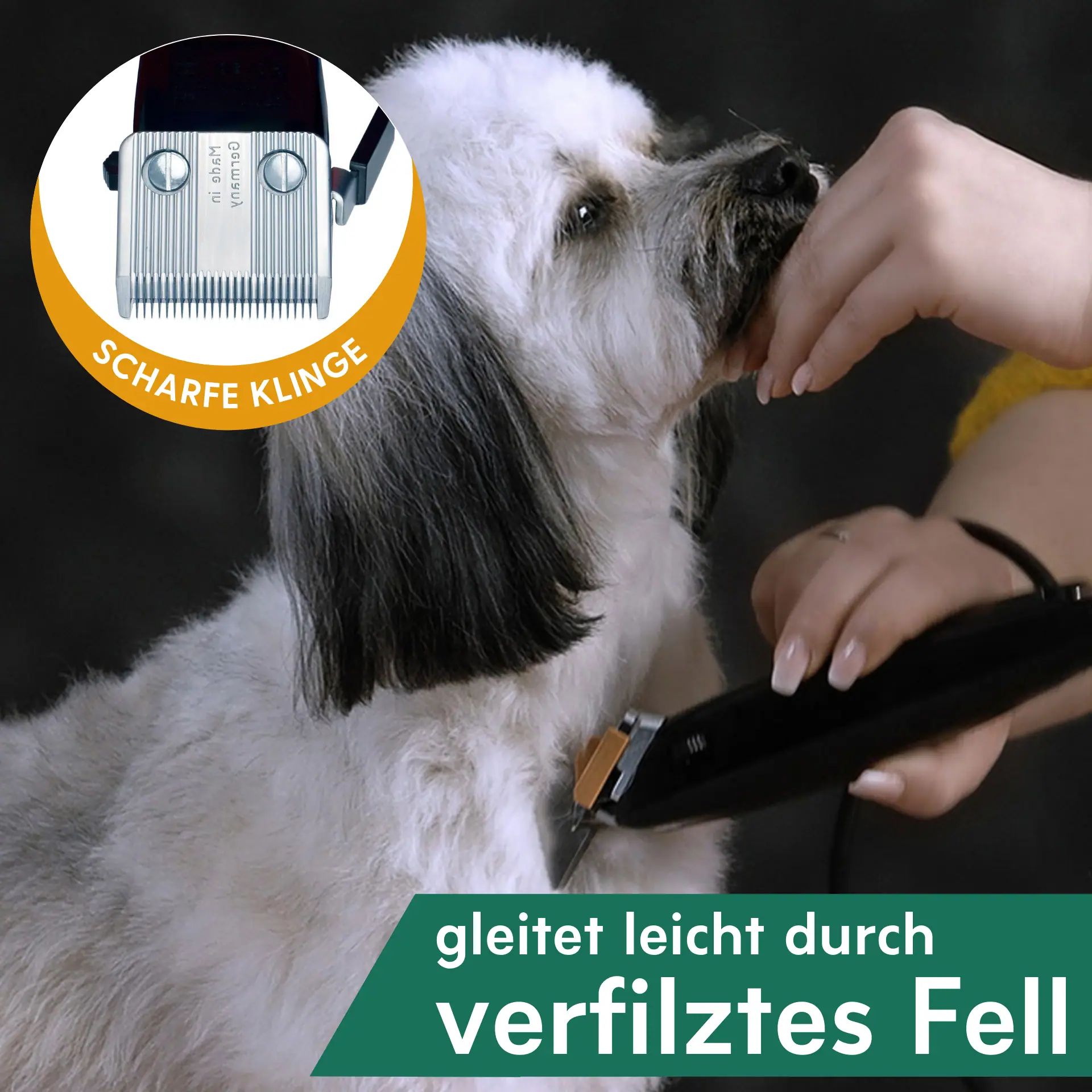 Die ideale, leise und präzise Schermaschine für die Vollschur mittelgroßer, geräuschempfindlicher Hunde.