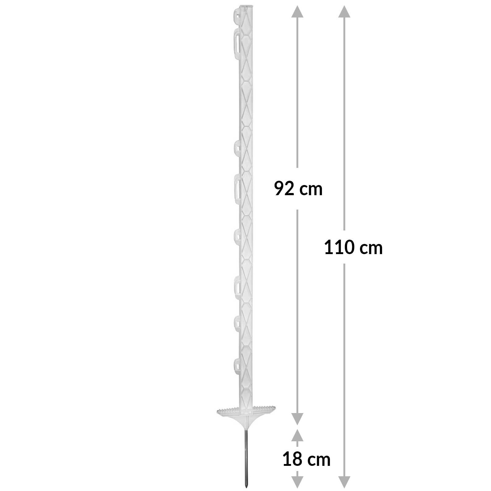 Stolpe för betesstängsel av plast, 110 cm, med dubbel slitbana, vit, 20 st.