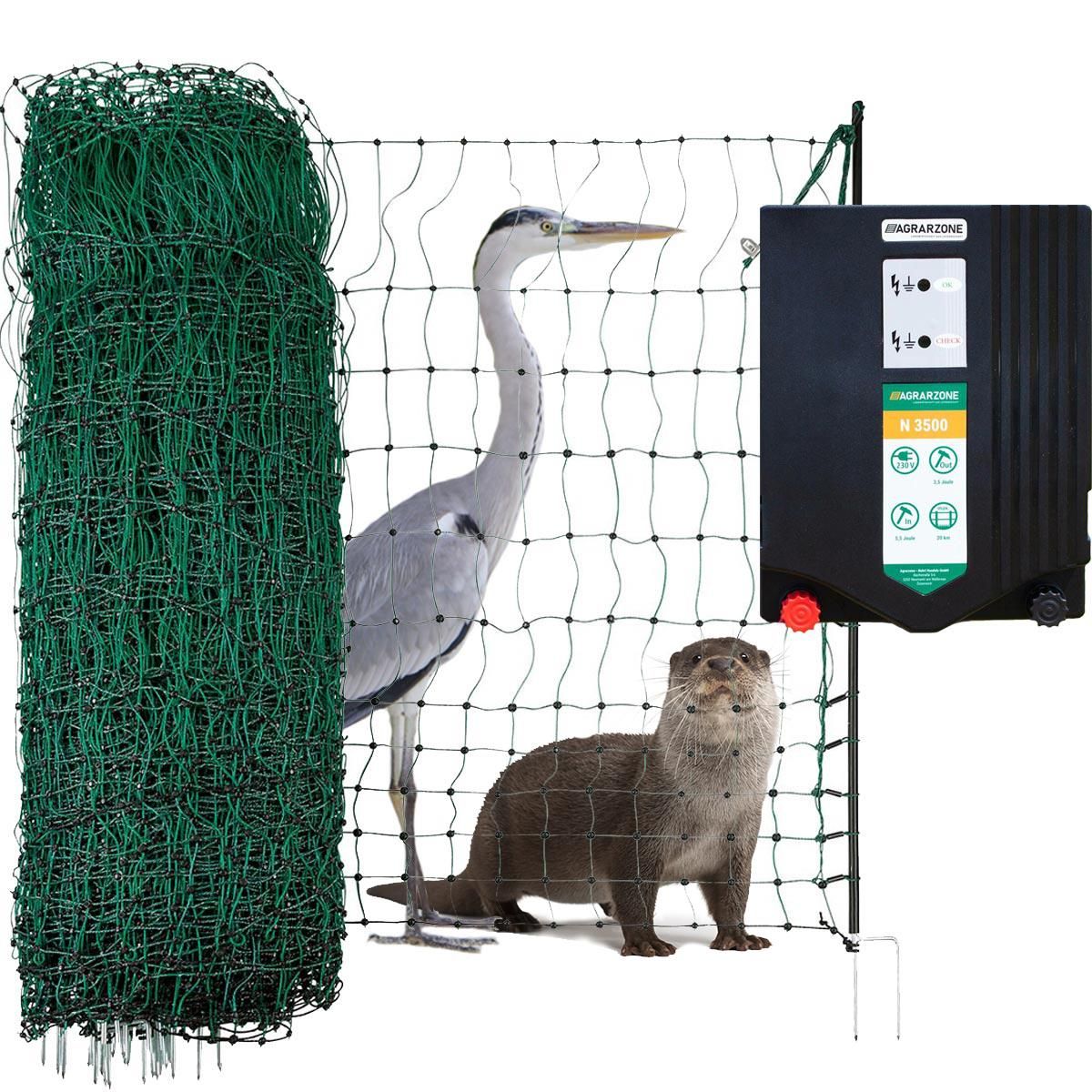 Agrarzone Stängsel för skydd av fiskdamm med 230 V elstängsel och 200 m elektroniskt nät för fiskgjusar och utter