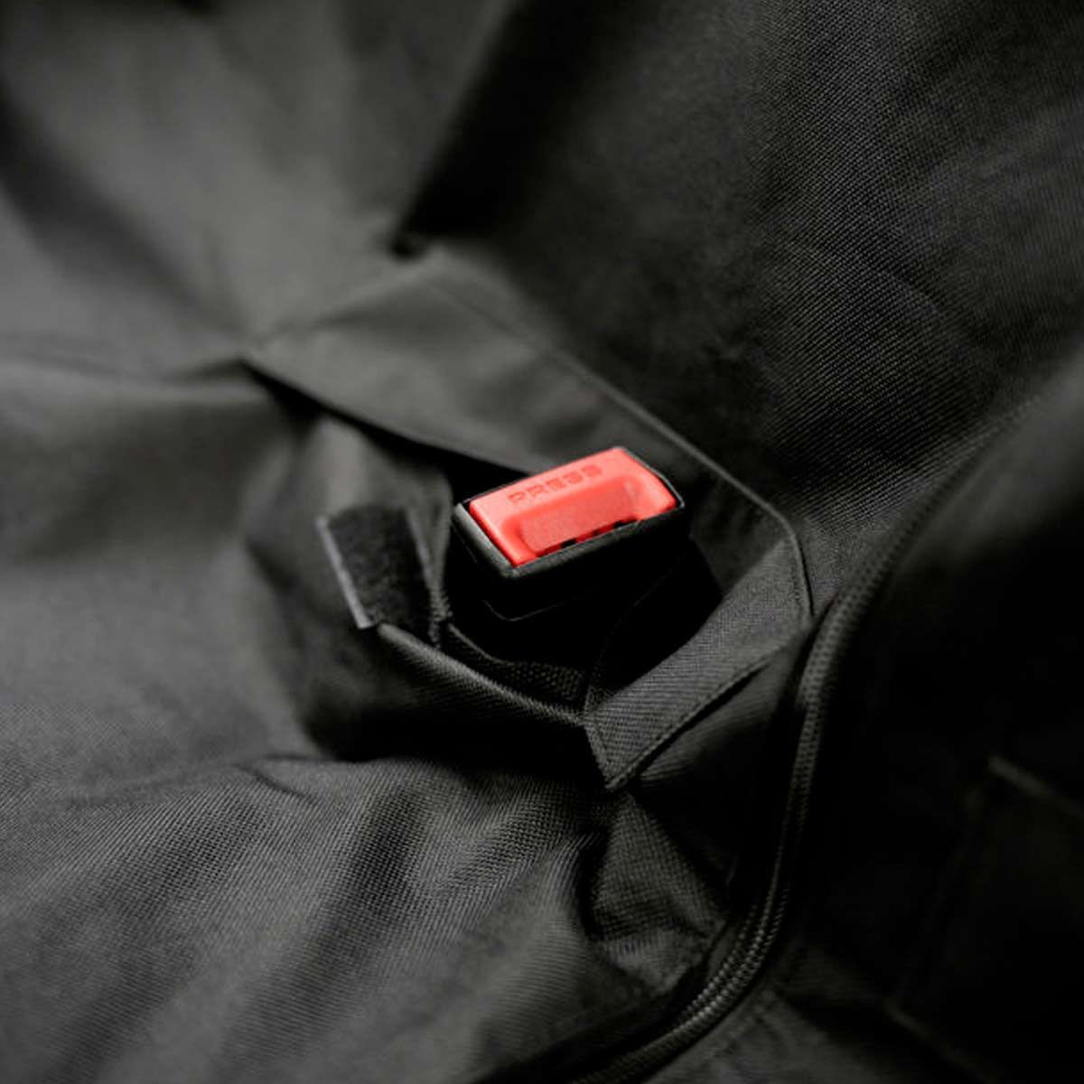 Detta praktiska bilbarnstolsöverdrag skyddar dina stoppade säten från smuts , fukt och klormärken från din hund. Den är gjord av ett slitstarkt, tvättbart tyg. Tack vare den universella passformen är denna bilhundmatta lämplig för alla typer av fordon med nackstöd. Filten har två bältesöppningar som kan öppnas och stängas med kardborre för att ge valfritt utrymme för en person i baksätet.