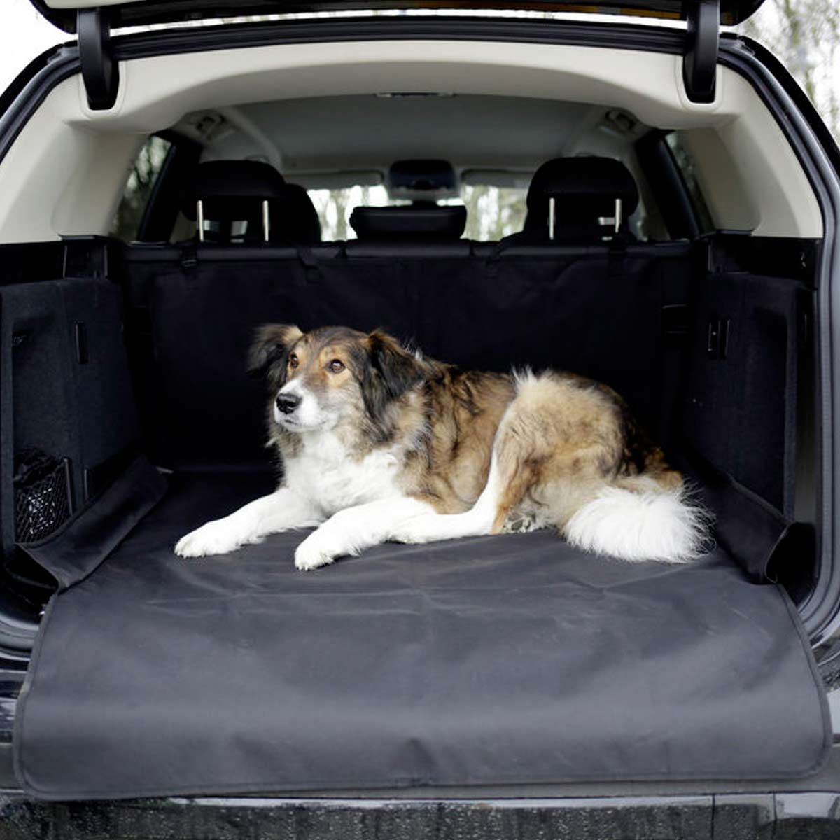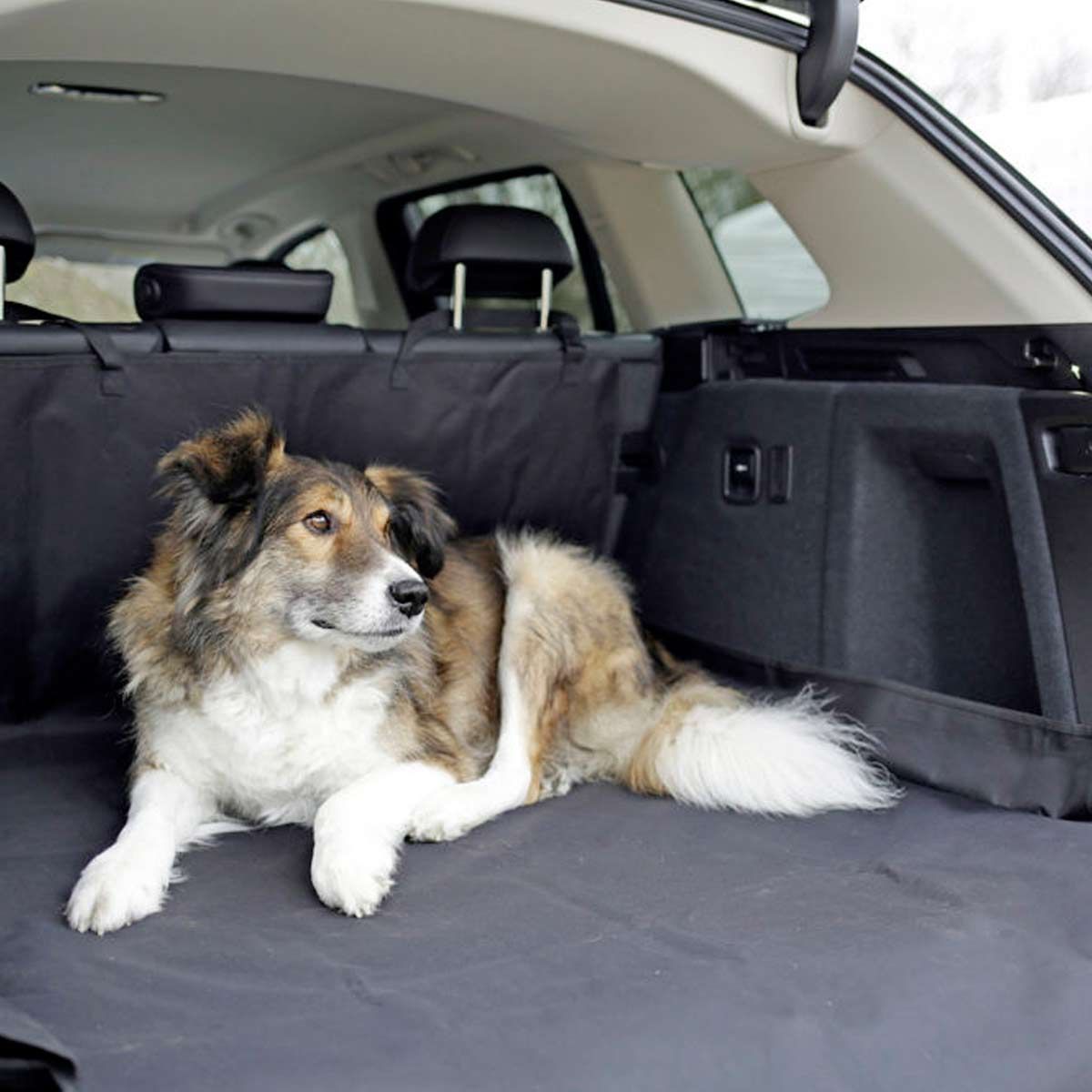 Detta praktiska bilskyddsfodral hjälper till att skydda bagageutrymmet eller lasten utrymme för en bil för bagageutrymmet. Denna hundmatta skyddar din bil från smuts, fukt och klormärken från din hund. Den är gjord av ett slitstarkt, tvättbart tyg. Tack vare den universella passformen är denna bilhundmatta lämplig för alla typer av fordon med nackstöd. Det integrerade stötfångarskyddet fälls upp efter lastning och fungerar som en skyddande sköld mot smuts- eller klomärken.