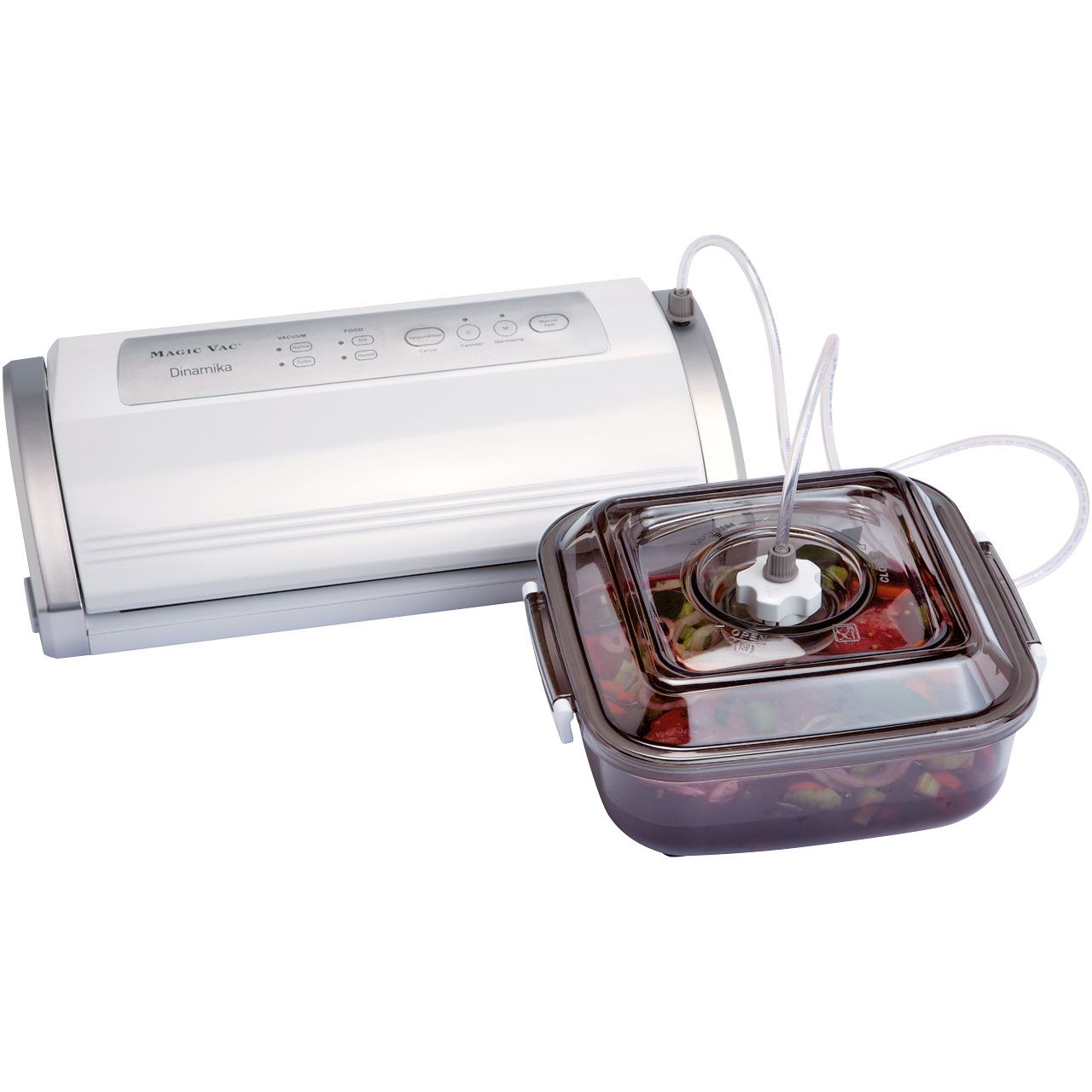 Magic Vac Dinamika vakuumförpackare gör det enkelt att vakuumförpacka kött, fisk och andra livsmedel. Genom att luften sugs ut ur påsen försluts den färska produkten lufttätt, vilket bromsar nedbrytningsprocessen och förlänger produktens hållbarhet med tre till fem gånger.