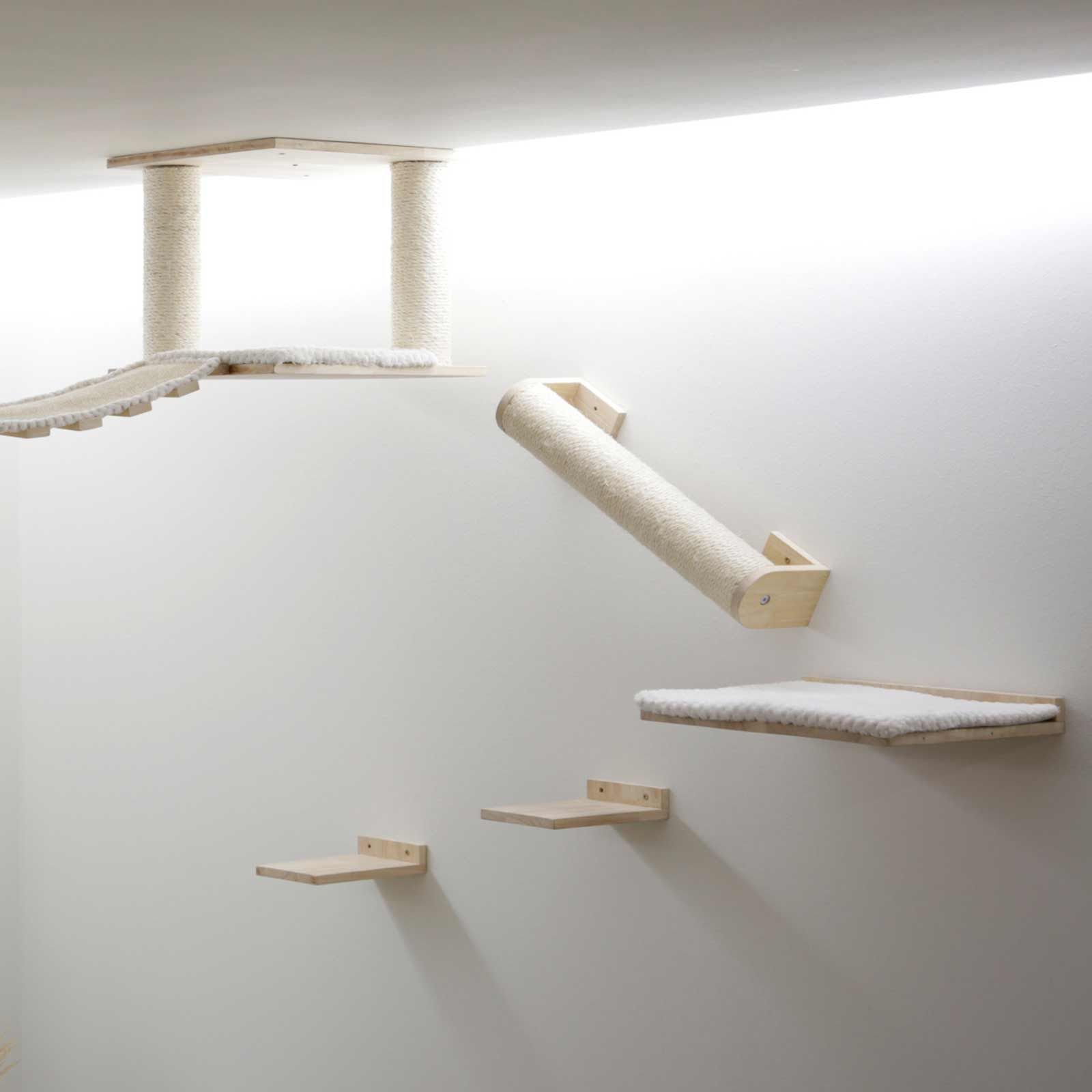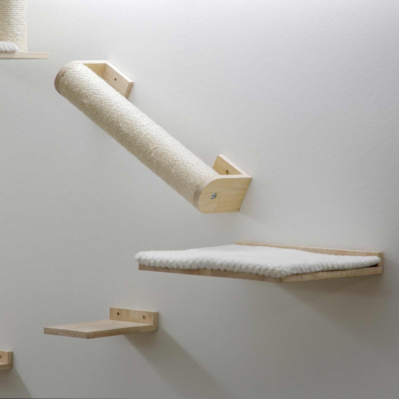 Designa en helt individuell klättervägg för ditt husdjur. Placera helt enkelt de 7 elementen efter din smak och ge din katt gott om möjligheter att klia och leka. I detta set får du: två fotbrädor, en liggbräda med kuddfodral, en pelare som fungerar som ramp, 2 liggytor med pelare och avtagbara dynor samt en hängbro med sisalöverdrag.