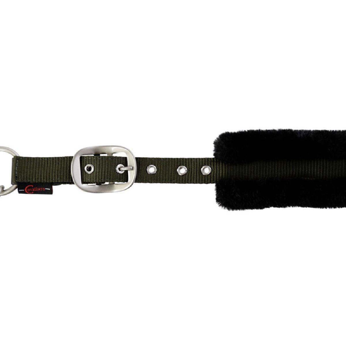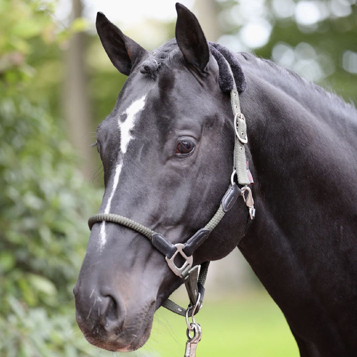 Huvudkrage från Covalliero i en tilltalande design tack vare en kombination av runda och platta remmar i en vacker olivgrön färg. Det slitstarka materialet har också starka sömmar med vackert formade beslag. Dessutom är nackremmen utrustad med en vävd pälsfyllning, som är skonsam mot hästens känsliga hals. För att kunna justera kragen perfekt är näs- och nackremmen justerbar med spännen. Huvudkragen kan enkelt sättas på med en karbinhake och kan enkelt öppnas och stängas.