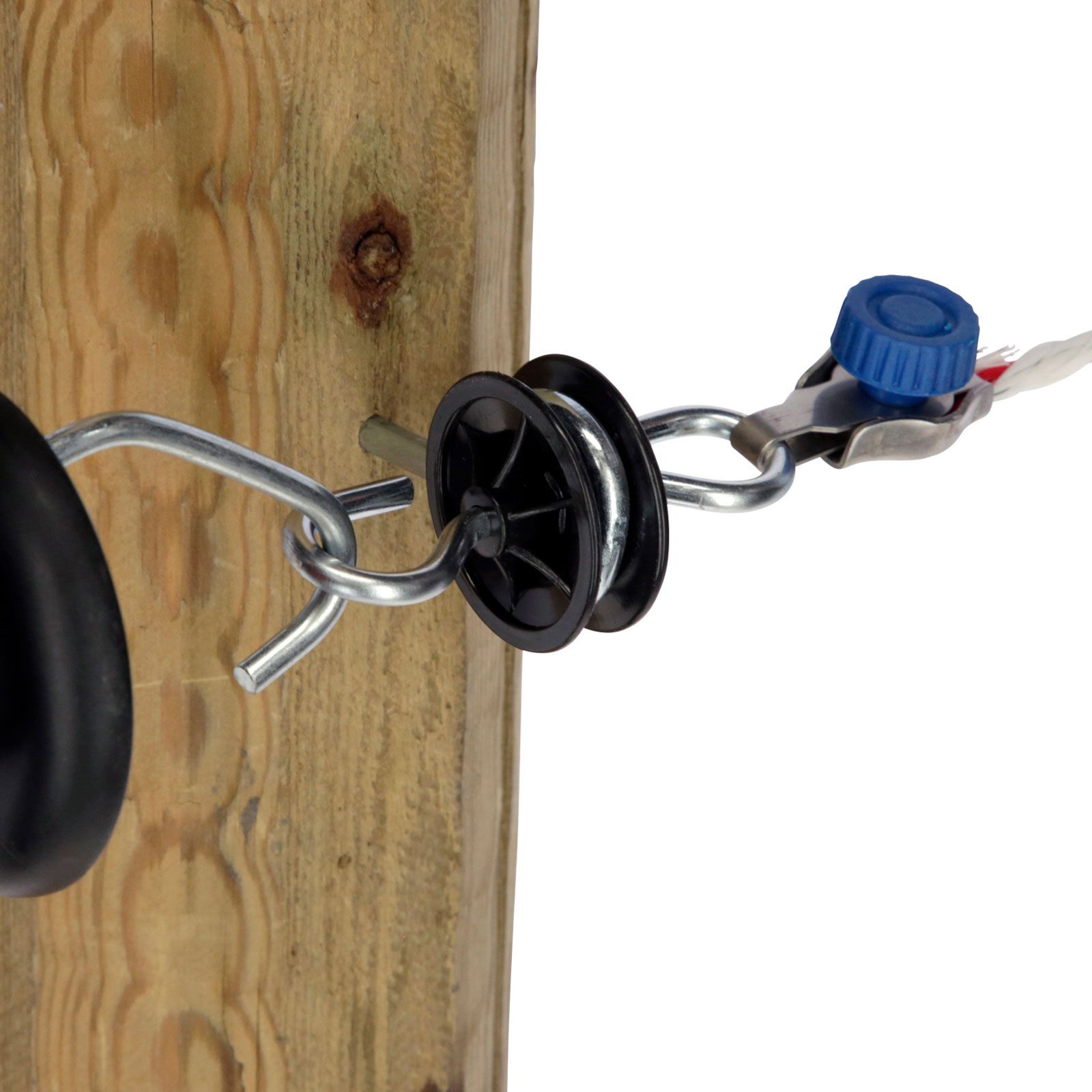 Den här högkvalitativa, patenterade snabbkopplingen för rep/strängar gör det möjligt att snabbt, okomplicerat och elektriskt optimalt ledande ansluta ledarmaterial på grindisolatorer och grindhandtag. Kontakten är lämplig för strängar, rep upp till Ø 8 mm och smala remsor upp till 10 mm.