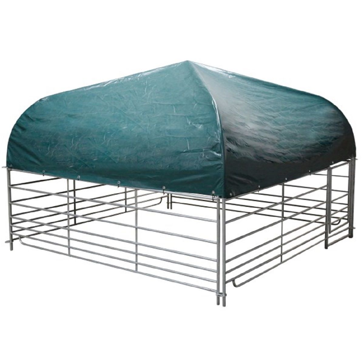 Presenningen är en extremt robust och UV-stabil lastbilspresenning och har sytts i hörnen, som fästs på de instickbara hyllorna och takkonstruktionen med de medföljande läderremmarna eller kabelbanden. De anslutningsbara kopplingarna och vingmuttrarna gör monteringen mycket enkel och kan göras utan verktyg. Presenningen och de instickbara hyllorna bildar tillsammans ett skydd för får, getter och grisar.