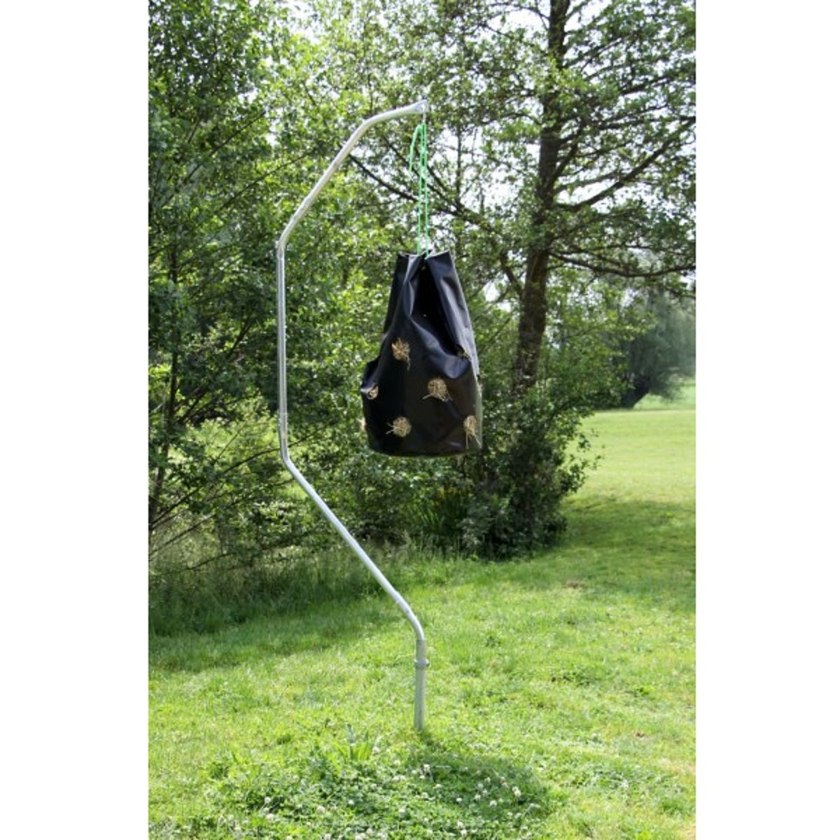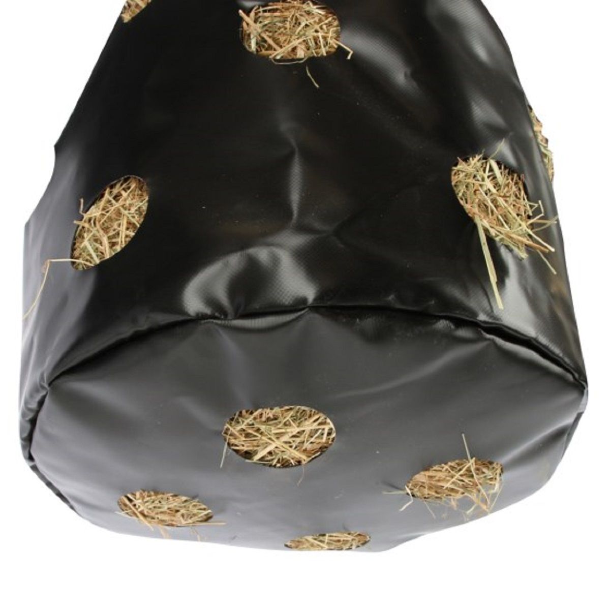 HayBag från Kerbl kombinerar många fördelar i en och samma produkt. I motsats till att utfodra hö på marken minskar foderförlusten med ca 15 % och samtidigt uppmuntras en långsam och hästvänlig utfodring. Till skillnad från hönät är HayBag-hösäcken mycket lätt att fylla och lätt att rengöra. Den släta ytan minskar risken för skador. HayBag är mångsidig och kan användas i hästboxen, på hagen, i släpvagnen och på turneringar. Håldiametern är ca 8 cm.