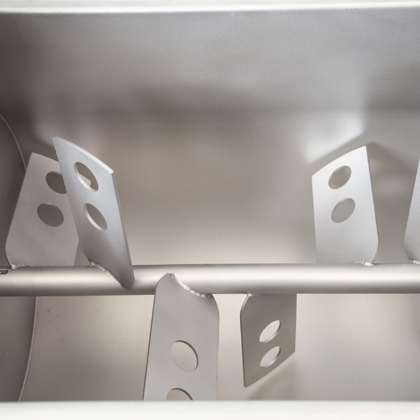 Smörkvarnens omrörare, smörbehållaren och avloppskranen är tillverkade av livsmedelssäkert rostfritt stål. Materialet gör maskinen lätt att rengöra och hygienisk.
