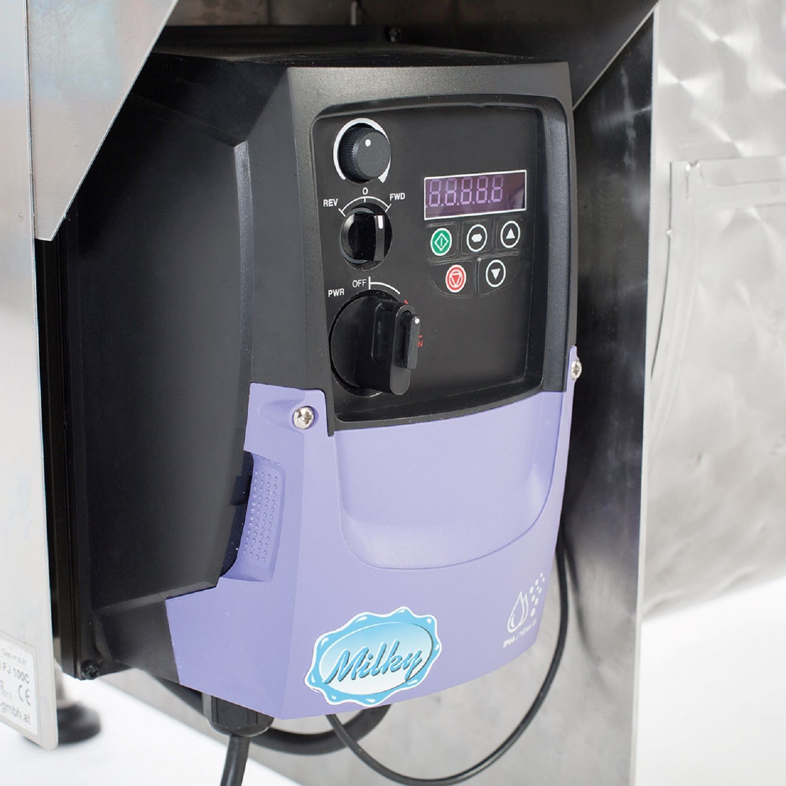 Smörmaskinen Milky FJ 100 C är idealisk för professionell och halvprofessionell användning. Den elektriska smörmaskinen kan bearbeta 15-50 liter grädde/vispad grädde på 20-40 minuter.