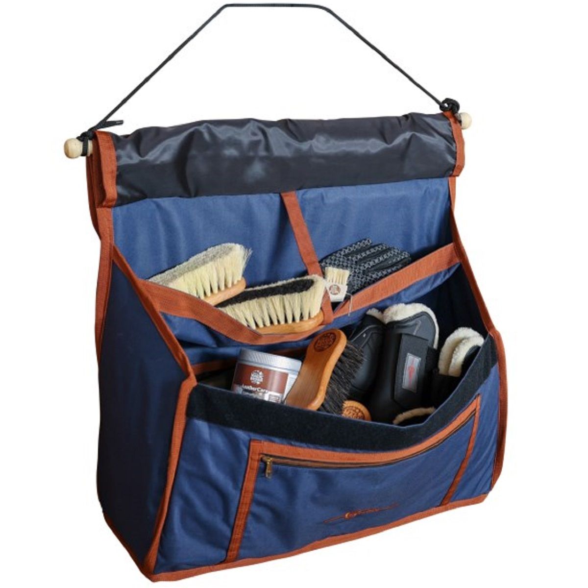 Den robusta och praktiska Milano hästboxväskan säkerställer ren och ordnad förvaring av putsredskap, spray, stövlar, halster, klockor etc. i stallet och på utställningen. Ett stort förvaringsutrymme gör det möjligt att förvara många olika redskap. Hästboxväskan är tillverkad av ett smutsavvisande, lättskött och robust material som är perfekt för användning i stallet. Det vattentäta oxfordtyget skyddar också innehållet från regn och smuts. När väskan inte används kan locket stängas med en kardborreknäppning. Tack vare träpinnen och de stabila bottnarna och väggarna kan man hänga upp den stabilt. Hästboxväskan är mycket lätt att fästa på stängerna i hästboxarna.