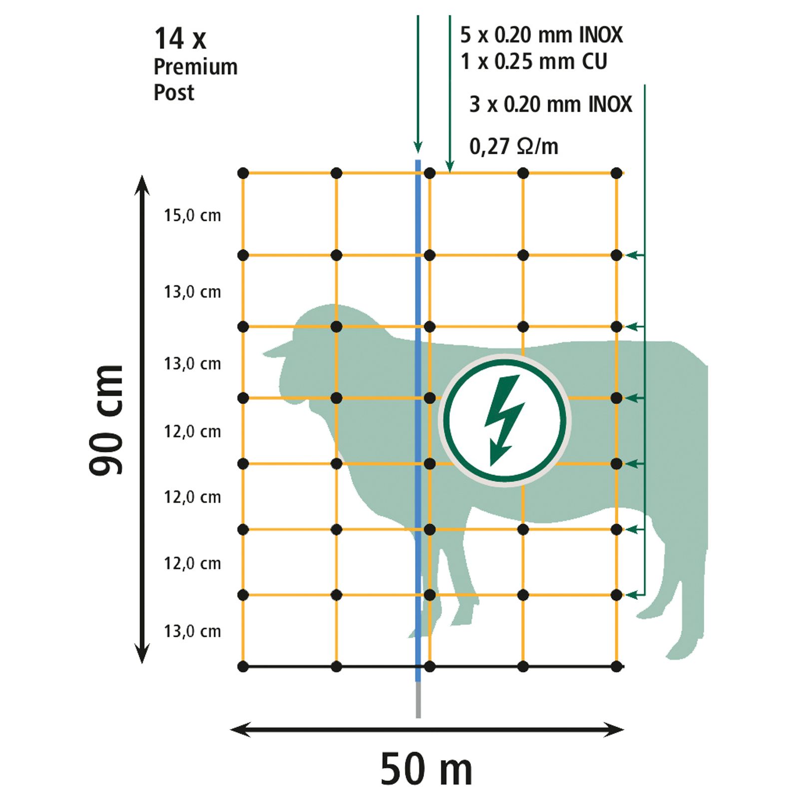 Ako fårnät OviNet Premium med ström, enkelspets orange 50 m x 90 cm