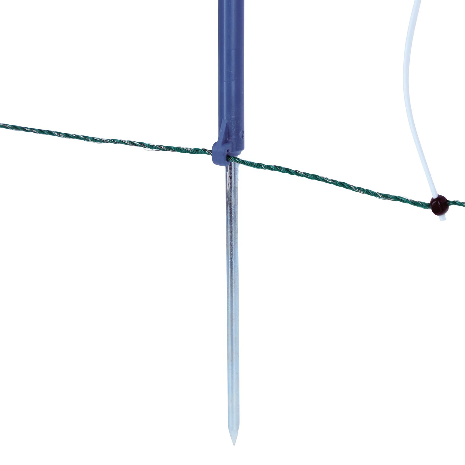 14 extremt robusta PREMIUM-stänger av höghållfast termoplast och långa glasfiberfibrer ger en ännu bättre och säkrare ställning och trotsar även de mest ogynnsamma väderförhållanden. I motsats till konventionella plaststolpar är Premium-stolparna betydligt styvare och mindre känsliga för böjning vid dragbelastning, vilket särskilt gäller i början och slutet av nätet och i hörnen. De goda höljeegenskaperna garanteras också av en plasttätning vid varje korsningspunkt i nätet, som är permanent svetsad, samt en förstärkt, strömförande toppsträng.