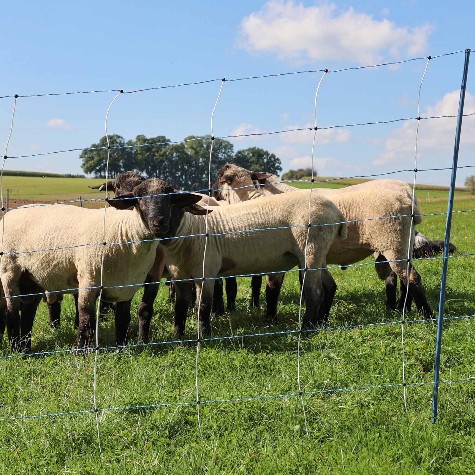 Wolf-nätet uppnår utmärkt ledningsförmåga genom horisontell strömledning med 3 x 0,30 mm TriCOND-ledarmaterial per tråd. TriCOND-ledartrådar är 5 x mer ledande än konventionella trådar av rostfritt stål med samma tjocklek och erbjuder därmed maximalt skydd av manteln - även över långa avstånd. Den speciella beläggningen av dessa trådar ger materialet robusthet och garanterar lång hållbarhet. Den förstärkta jordkabeln som kan anslutas som tillval för jordning längs hela nätets längd är optimal för svåra markförhållanden (t.ex. mycket sandiga eller torra jordar). De robusta vertikala stöttorna är fast anslutna till de horisontella stöttorna med 30 cm mellanrum och garanterar därmed ett kompakt stativ även på kuperad och ojämn mark.