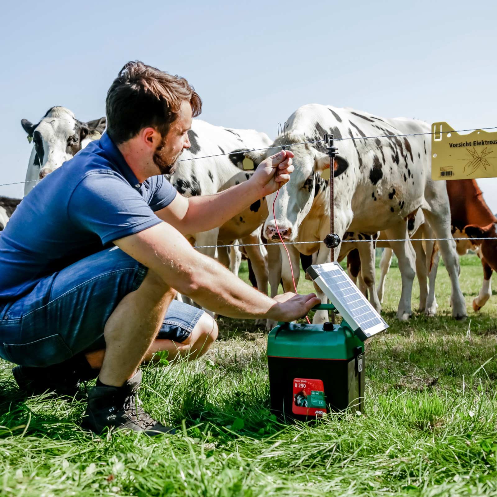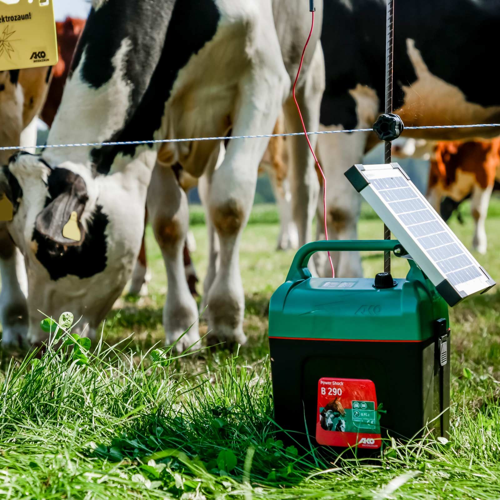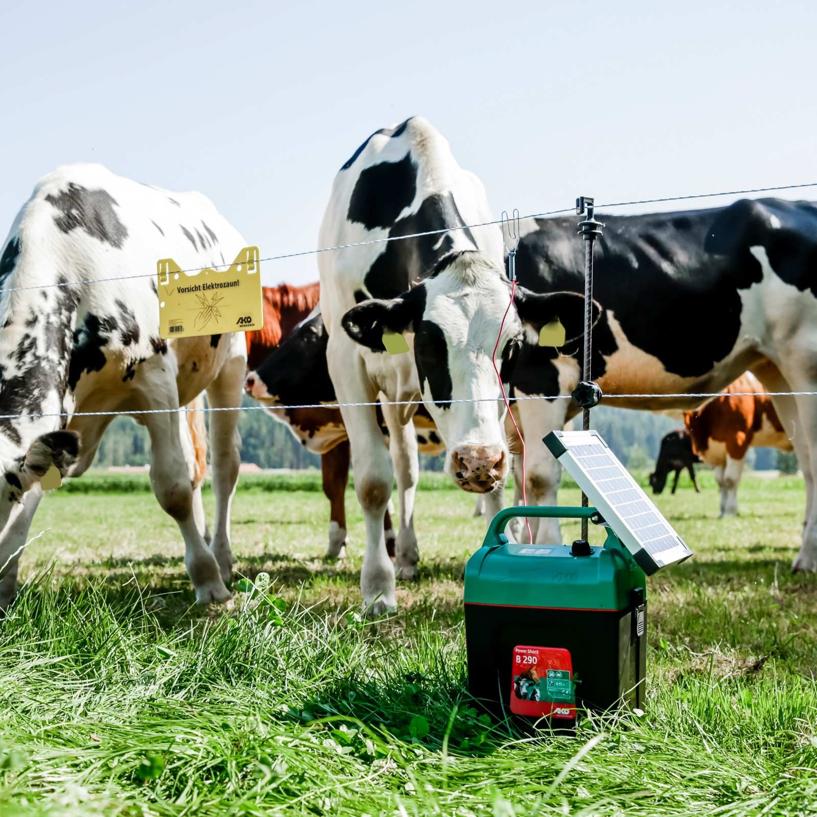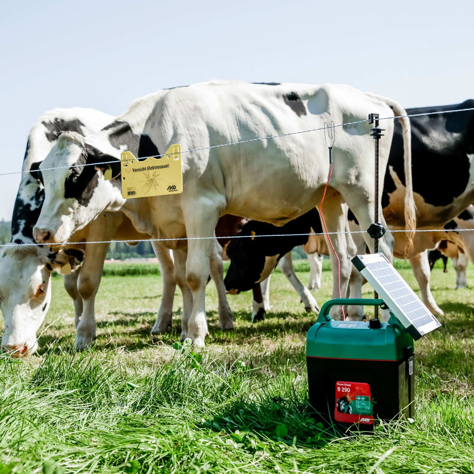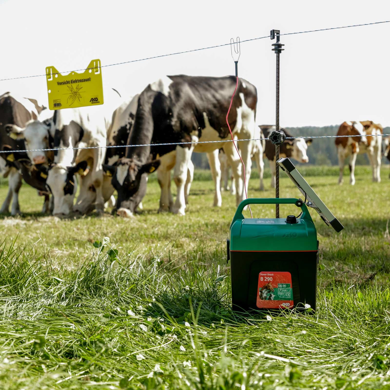 Den kraftfulla 9-volts universella elstängselaggregatet med 0,29 joule urladdningsspänning är perfekt för små och medelstora stängsel med lite vegetation. Mindre häst- och nötkreaturshagar, delhagar, men även stängsel för grisar, nötkreatur och fjäderfä kan göras besättningssäkra på nolltid. På grund av den låga strömstyrkan lämpar sig apparaten också utmärkt för små djur som hundar och katter. Du kan driva elstängslet med ett vanligt 9 V-batteri. Med en lämplig 12 V-adapterkabel för 12 V-anslutningen (ingår inte) är det också möjligt att använda ett 12 V-våtbatteri.