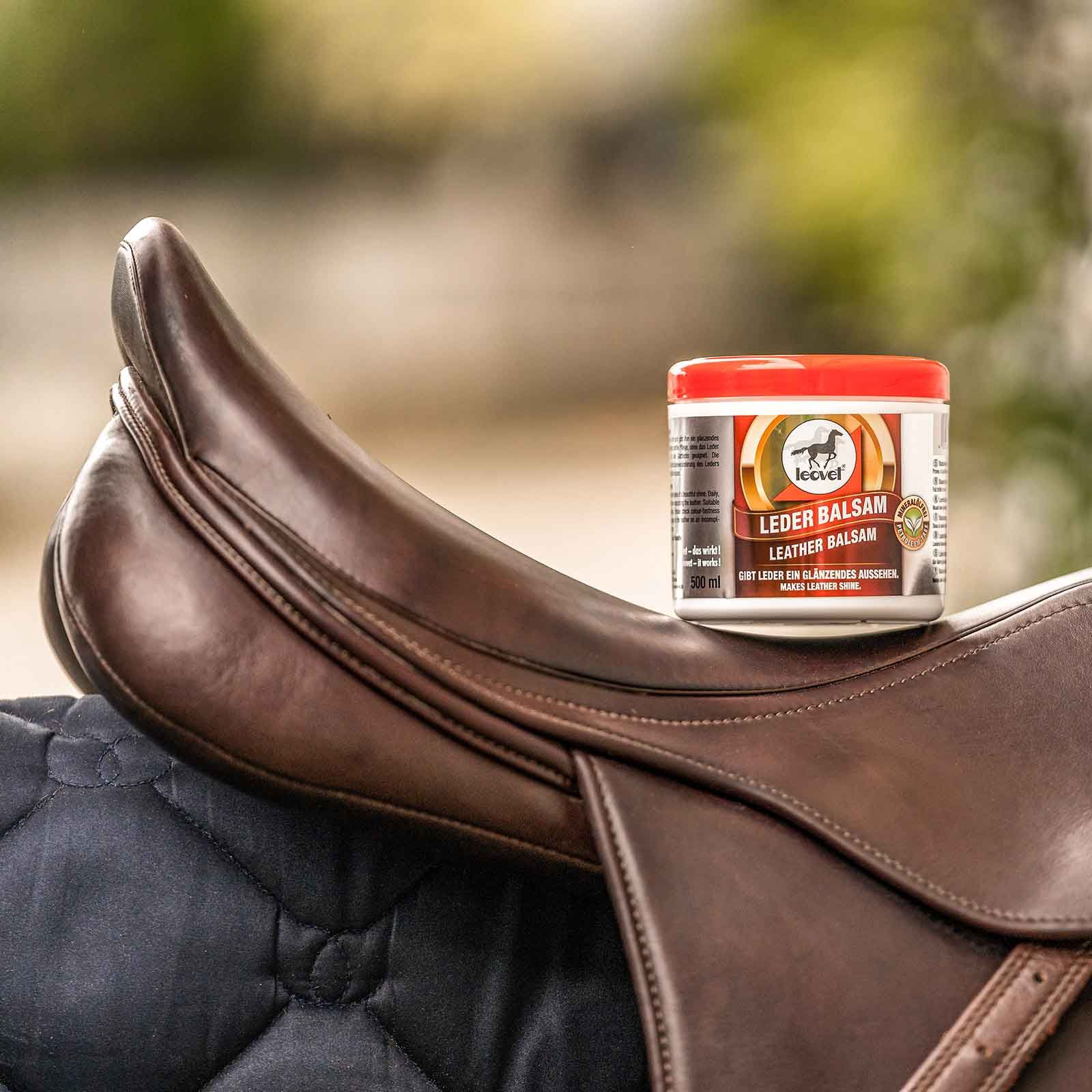 Leovet Leather Balm förnyar gammalt läder och ger det ett glänsande utseende. Den är lämplig för daglig och skonsam lädervård utan att övermätta. Vare sig det gäller stövlar, sadlar eller ryttare - läderbalsamet är lämpligt för allt slätt läder. Den verkar djupt in i lädret och vårdar det inifrån och ut. Det ingående carnaubavaxet skyddar mot yttre påverkan och ger en vacker glans. Leovet läderbalsam är fritt från mineralolja.