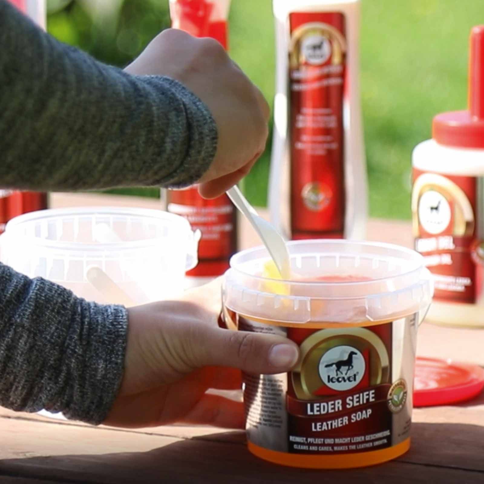 Leovet Leather Soap rengör enkelt, skonsamt och grundligt med rena vegetabiliska oljor. Den ingående sojaoljan är en värdefull lecitinrik olja med ett högt innehåll av linolsyra. Det höga innehållet av vegetabiliskt glycerin och utvalda oljor har en vårdande effekt och håller lädret smidigt.