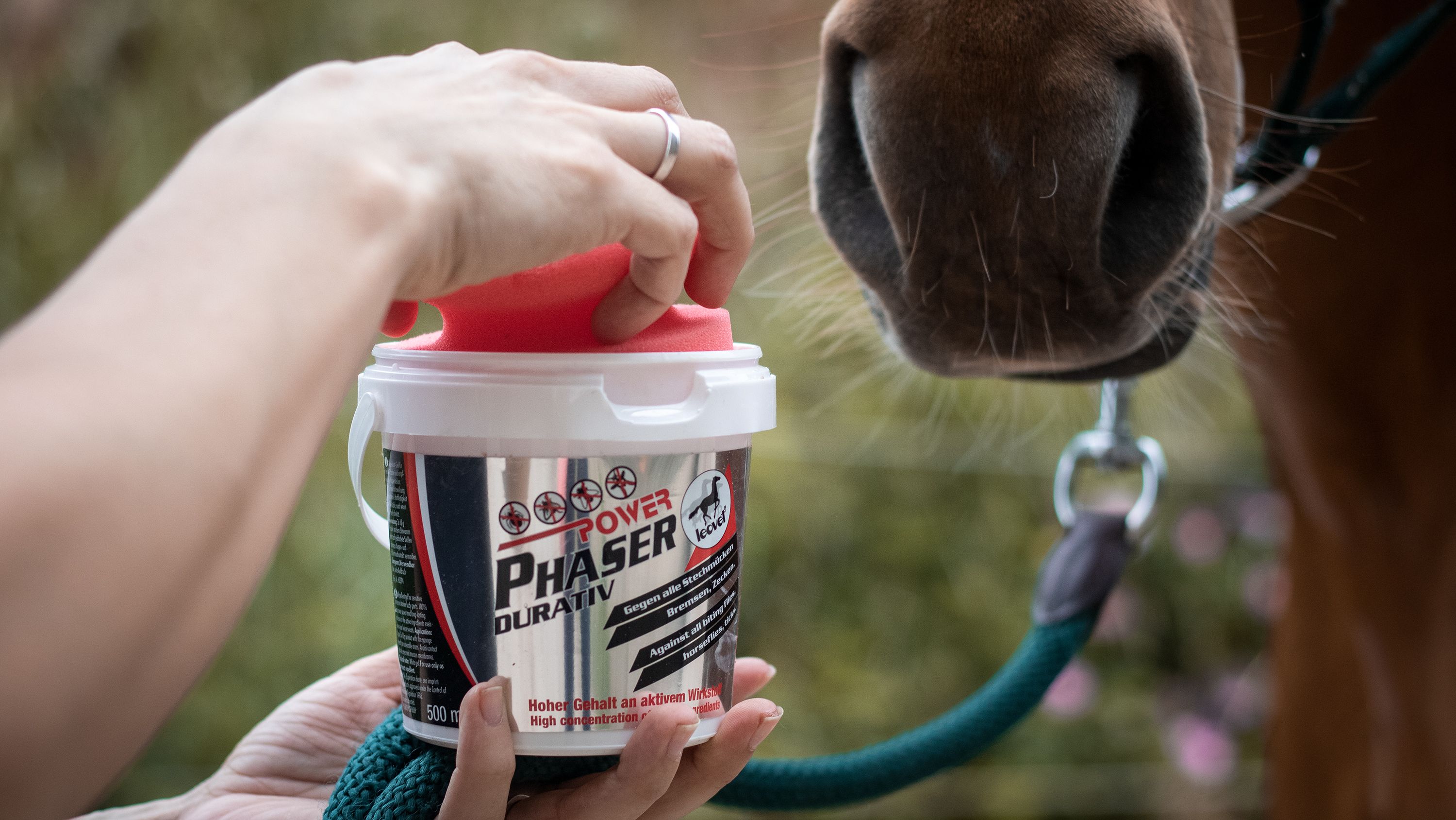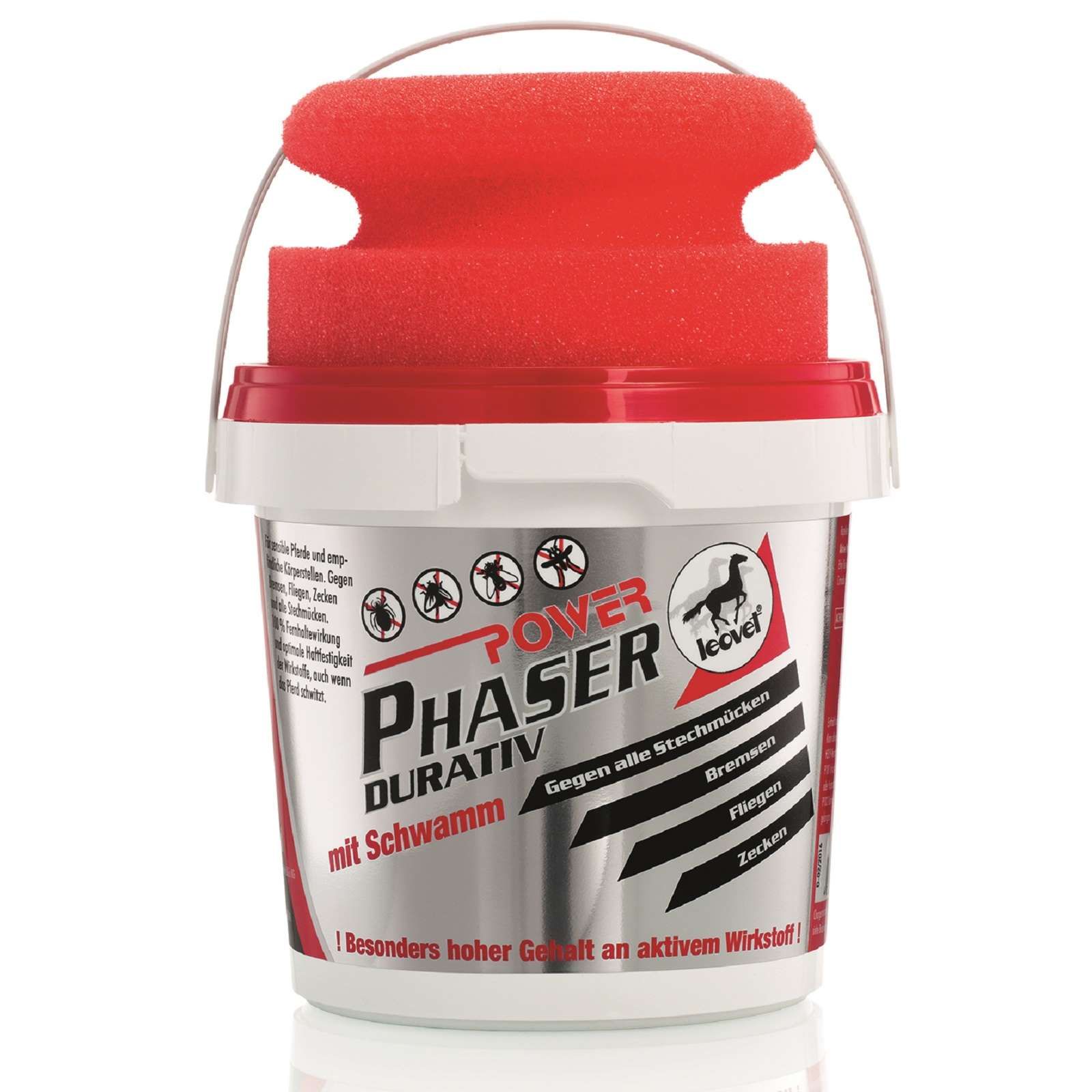 Power Phaser Durativ flugavvisande gel med ett mycket högt innehåll av aktiv substansskyddar hästen mot myggor, hästflugor, flugor och fästingar. Även när hästen svettas är den skyddad tack vare den starka vidhäftningsstyrkan. Svampen som ingår i förpackningen gör det särskilt lätt att applicera gelen på känsliga områden som huvudet. Det är också lättare att applicera med svampen på känsliga hästar eftersom den är ljudlös, till skillnad från flugspray.