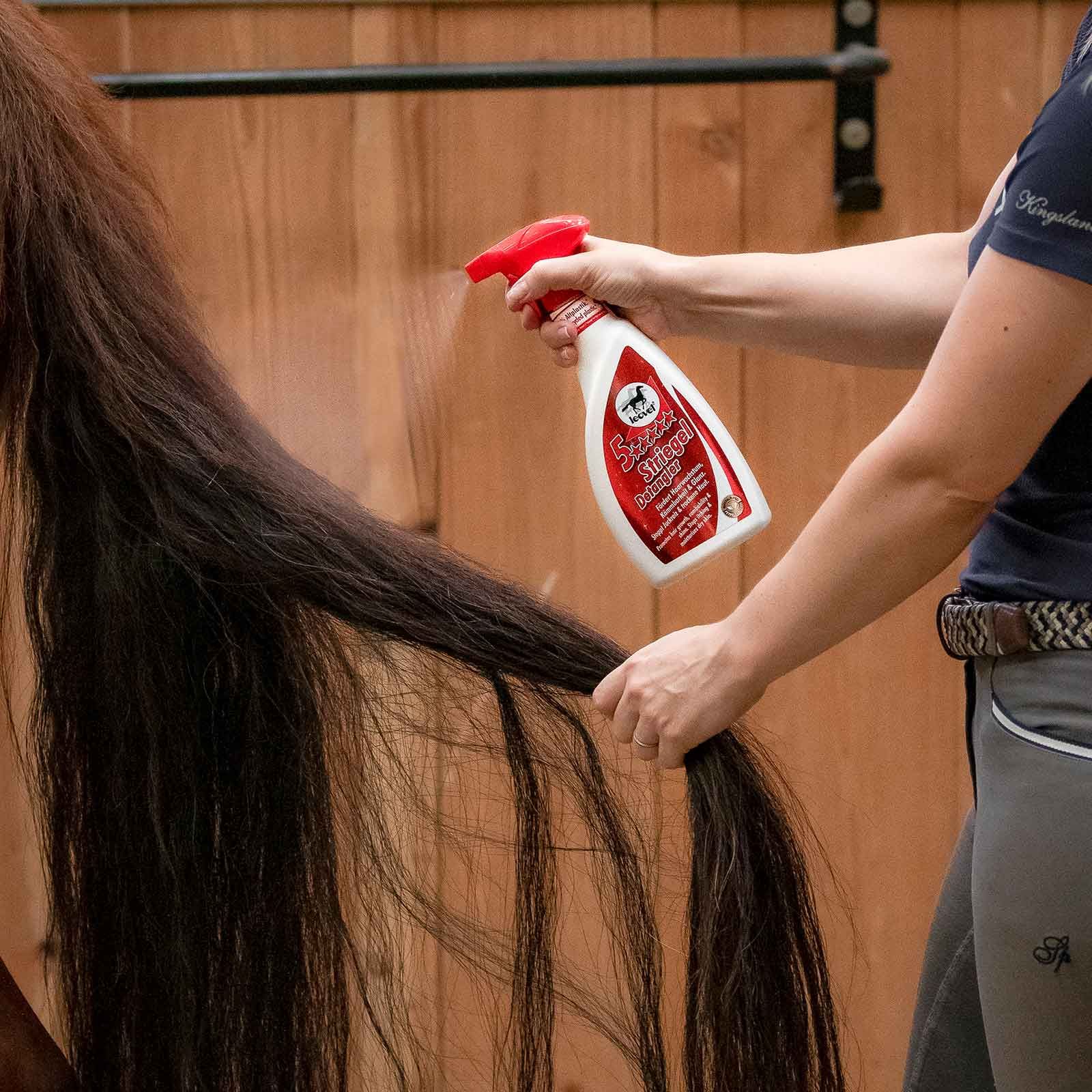 Premium Coatsheen Spray i 5-stjärnig kvalitet från Leovet ger slående vacker glans och smidighet till hud, mane och svans.