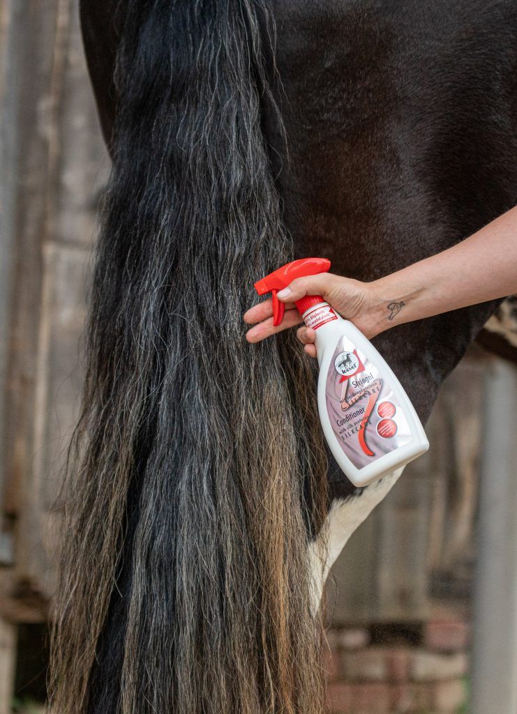 Mane spray med silkesproteiner som skapar fascinerande ljusreflektioner i manen, svansen och pälsen.