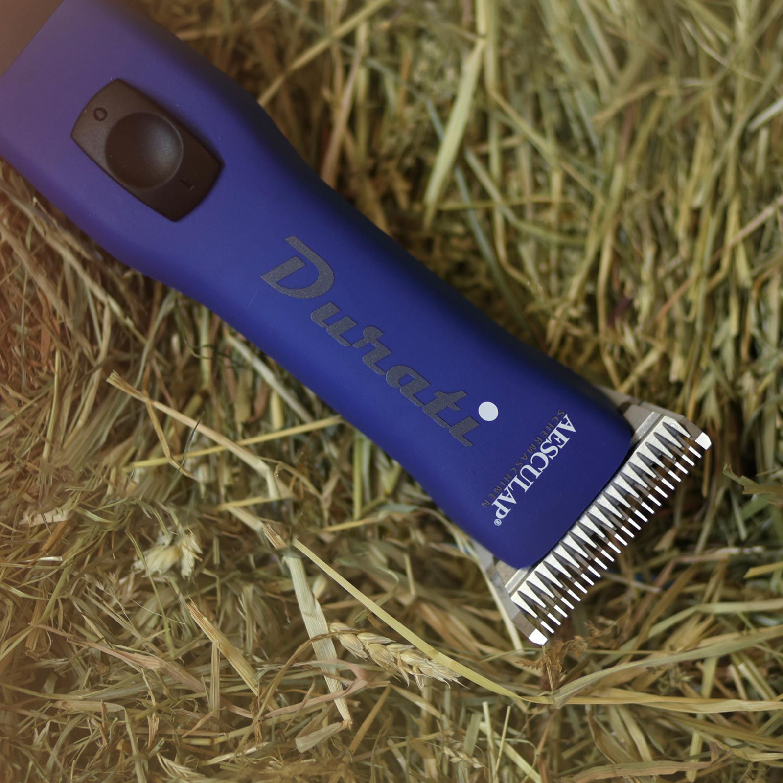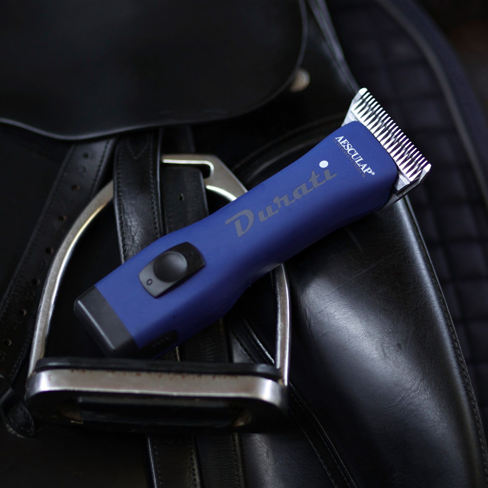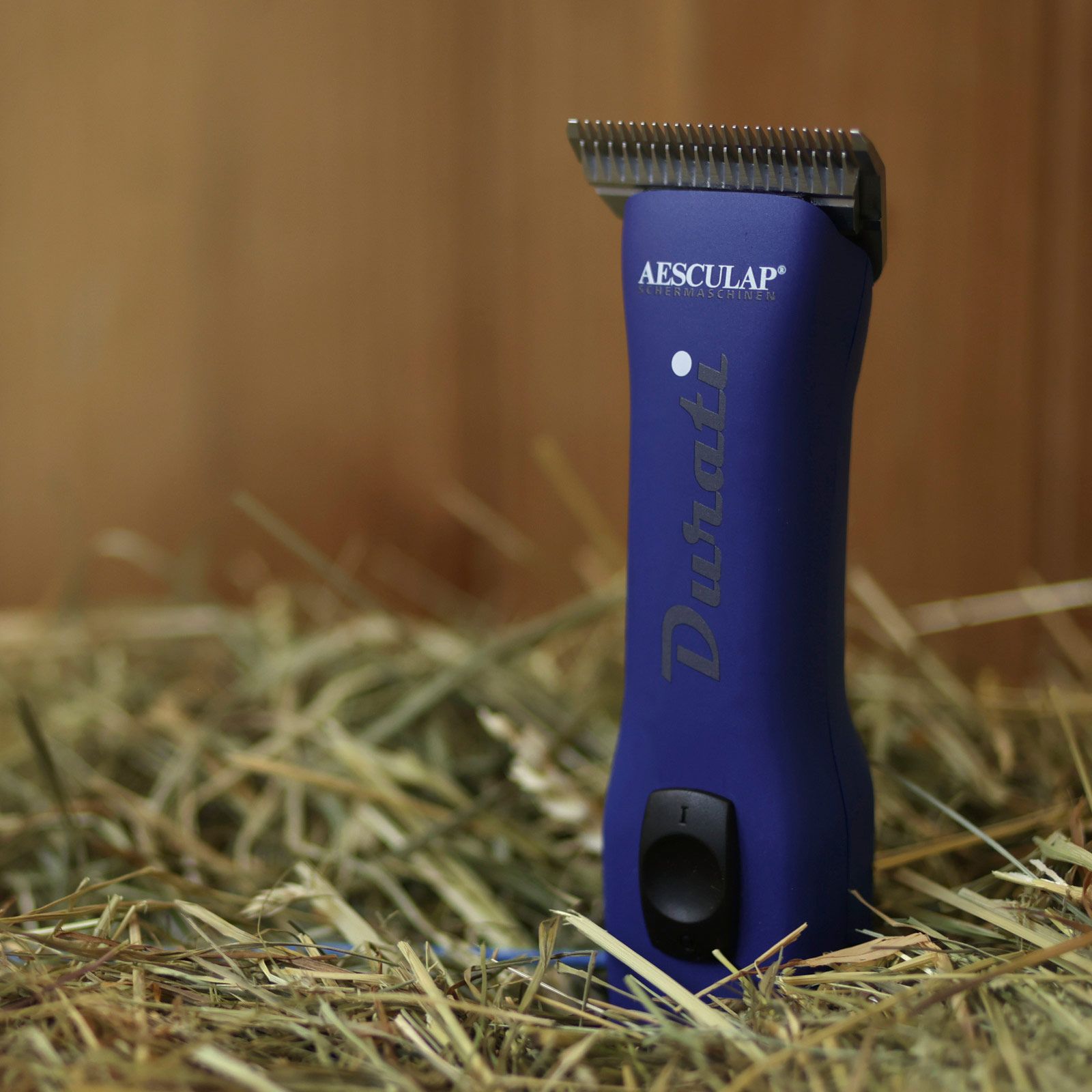 Durati hästklippare lovar exakt hästklippning i beprövad Aesculap-kvalitet. Durati är lätt, optimalt balanserad och passar även för mindre händer och spinner tyst genom hästens päls med lång batteritid. Det kraftfulla batteriet med litiumjonteknik har en otrolig drifttid på upp till 240 minuter. Den borstlösa EC-motorn med 3 500 varv per minut är särskilt kraftfull, så att det kraftfulla rakhuvudet kan glida genom pälsen och ger ett utmärkt klippmönster. Den kompakta designen gör det också möjligt att klippa på svåråtkomliga ställen.