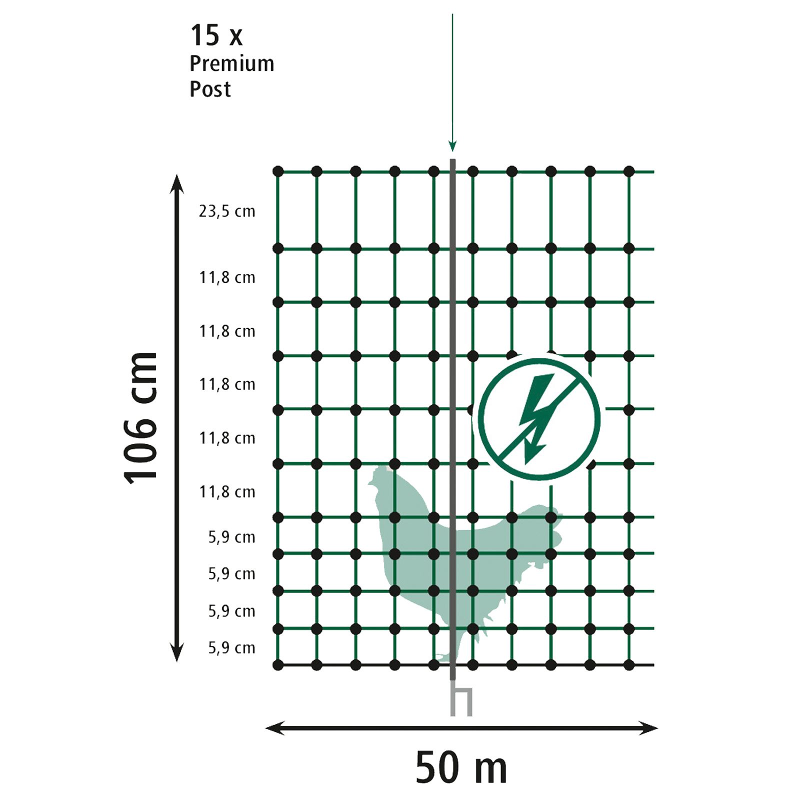 - 50 m x 106 cm med 15 Premium-pålar